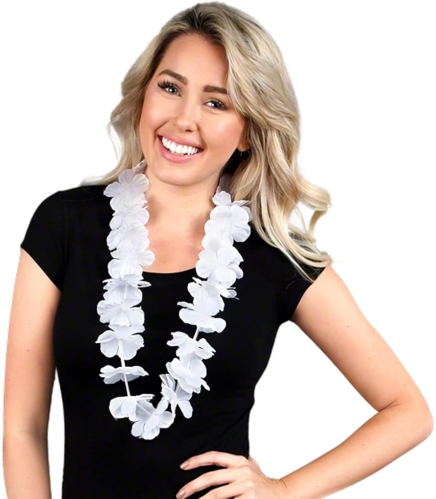 🕊️ As a White Flower Lei Necklace, I'm the go-to accessory for your Hawaiian-themed events. I'm 36" of pure, tropical delight, ready to be draped around your neck or used as symbolic event decor. I may not light up, but my radiant white hue is sure to light up your heart! 💖