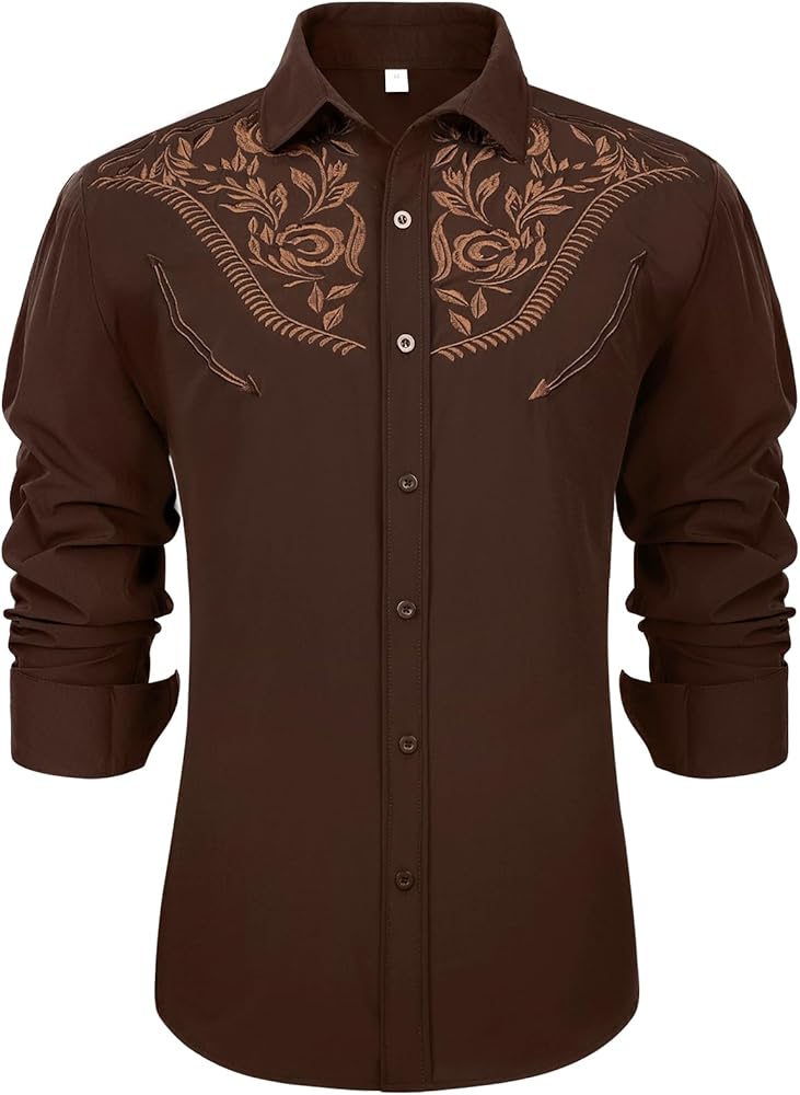 EYE CATCHING DESIGN--This country shirt presents a classic Western cowboy style, the collision between vintage and fashion shows a unique style.Thick and full rose embroidery and quality stitching makes the western shirt more exquisite.It is a must-have for men and women who like western cowboy.