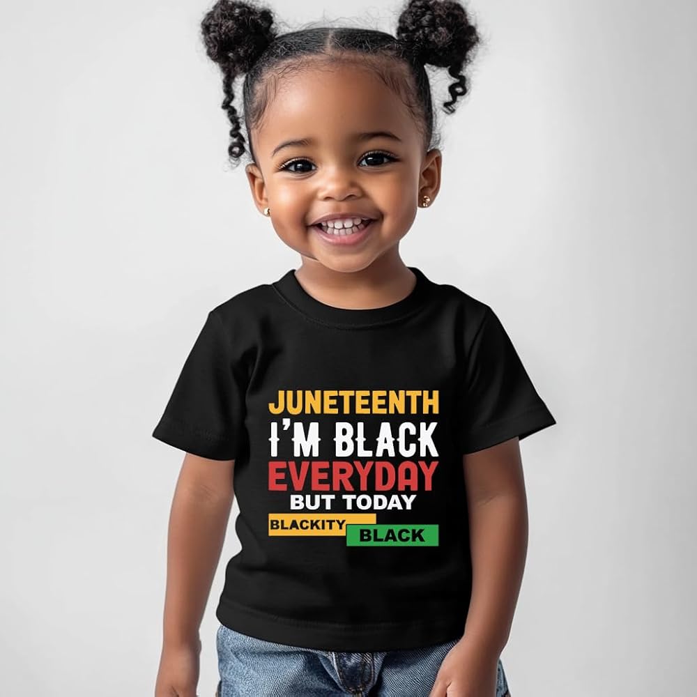 Celebrate Juneteenth Day with this kids Juneteenth shirt, specially designed for boys and girls aged 2-8 years. This toddler Juneteenth shirt features bold and meaningful designs inspired by Black history, freedom, and African American culture. Made from soft cotton blend fabric, this short-sleeve Juneteenth T-shirt is breathable, lightweight, and perfect for all-day wear. Whether your child is attending a Juneteenth parade, school event, family gathering, or simply learning about history, this Juneteenth shirt for kids is a stylish and comfortable choice. Available in sizes 2T, 3T, 4T, 5T, 6, 7, and 8T, this unisex tee fits both boys and girls perfectly. Designed to last, this toddler Juneteenth shirt is machine washable and won't fade after multiple washes. Give your child a way to proudly celebrate history and culture with this fun and educational kids Juneteenth T-shirt!