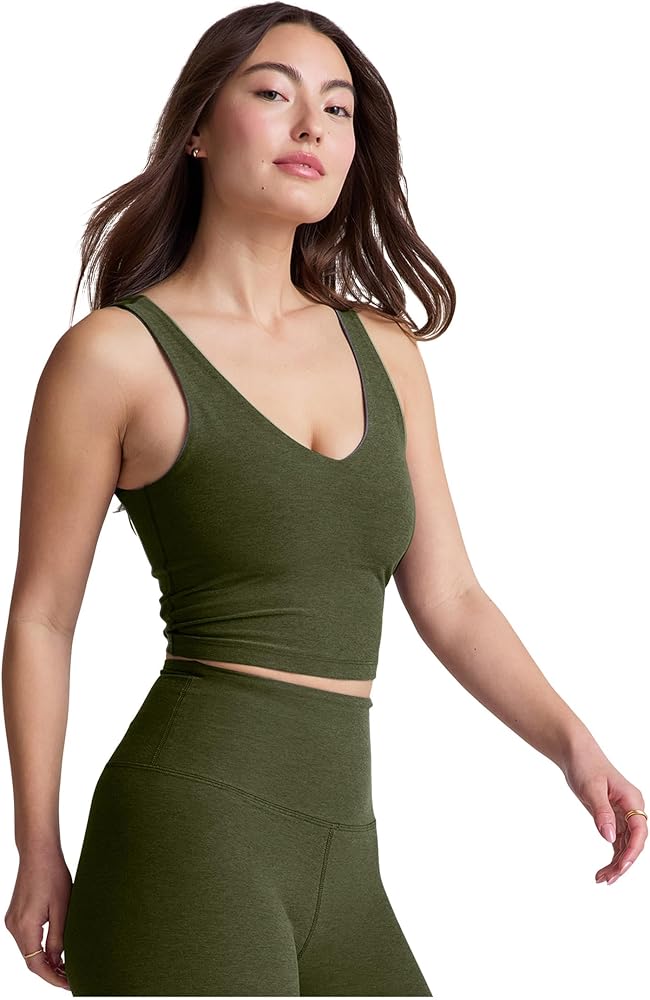 Start your day in style wearing the Beyond Yoga Spacedye Good Day Cropped Tank-where comfort meets versatility. Featuring a flattering front and back V-neckline, this tank offers a sleek, fitted look with medium support from its self shelf bra. The cropped length and sleeveless design make it perfect for workouts or casual hangouts. Made from ultra-soft Spacedye fabric, it's your go-to for both active moments and relaxed days. 87% polyester, 13% elastane. Machine washable. Made in the USA.