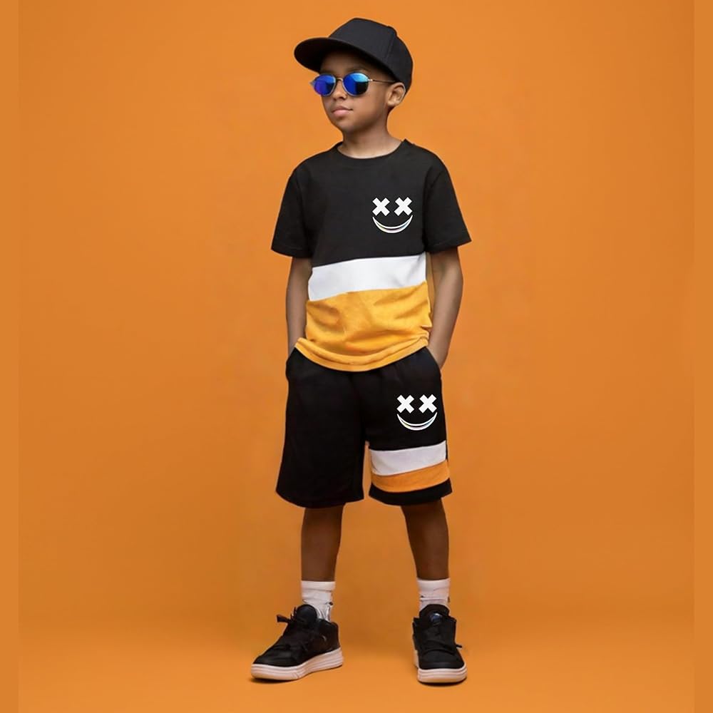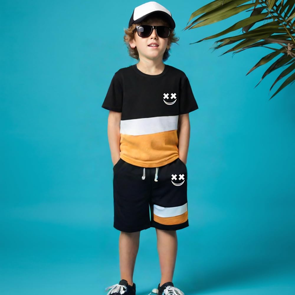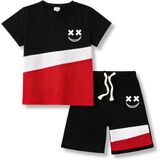 - Comfy 2-Piece Set Includes color-block short-sleeve tee + matching shorts, perfect for daily wear playground fun and family trips