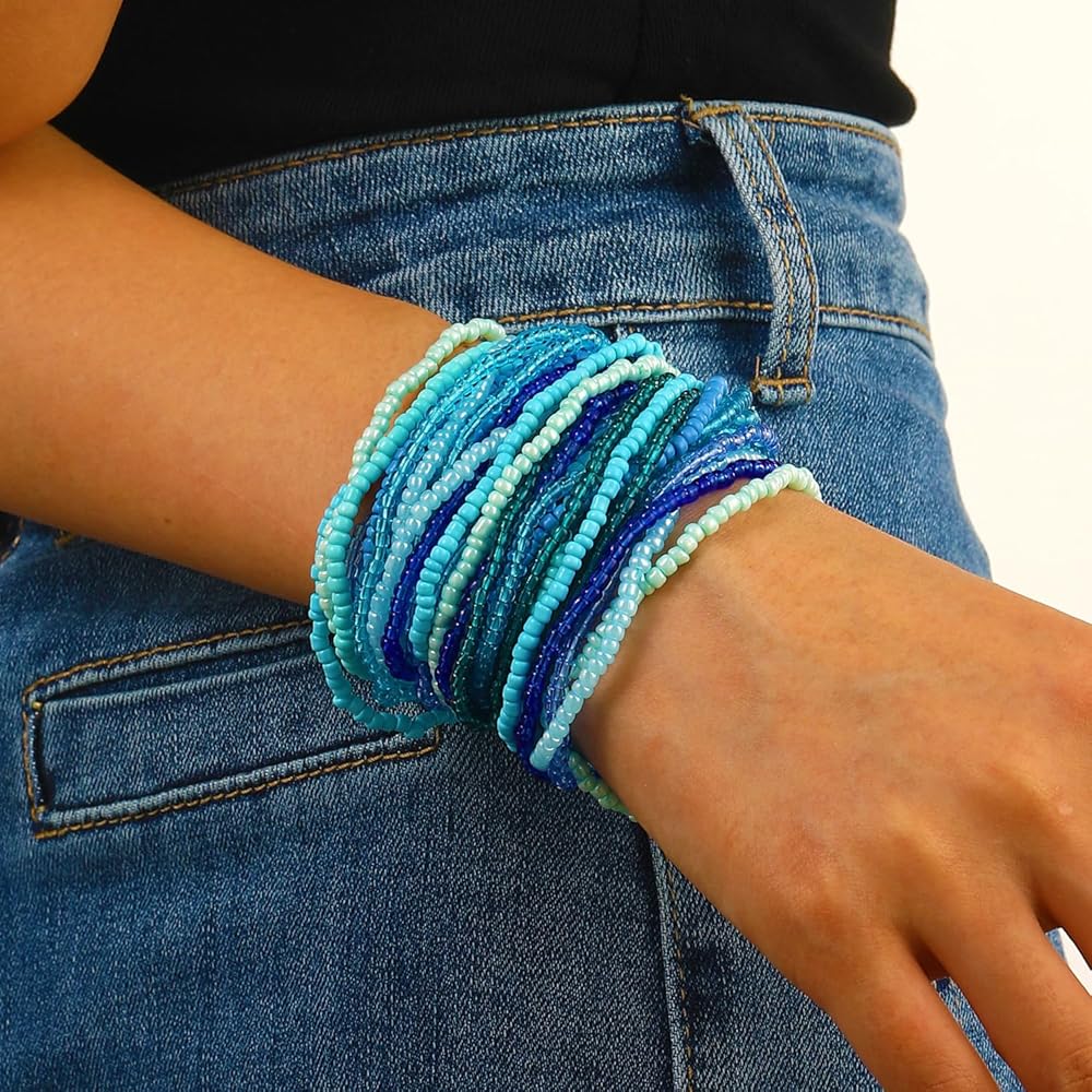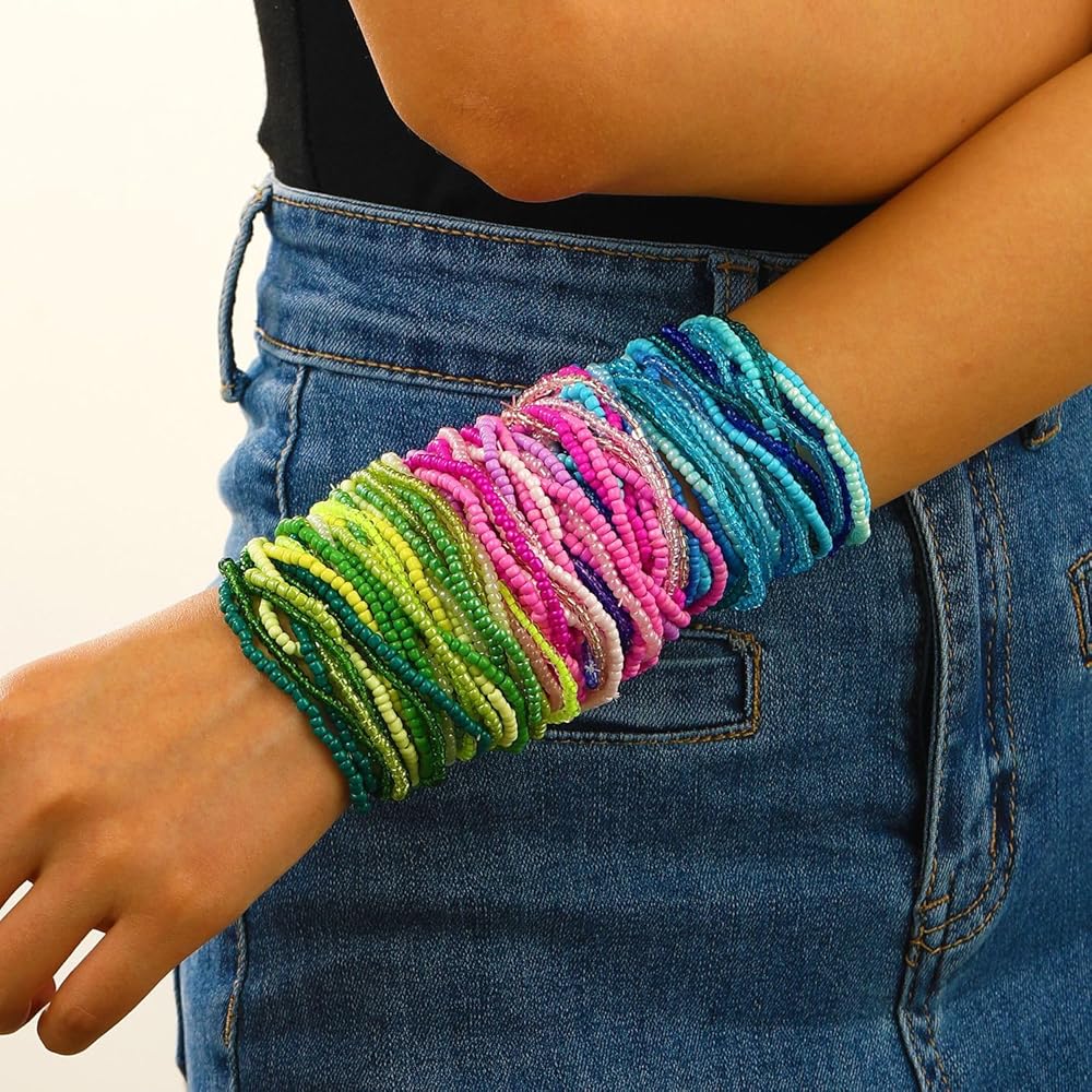 Bohemian Bracelet Set: 30pcs in a set, different styles bracelets can math different needs. You can wear a whole set of bracelets or you can choose a few of them to wear. Different colors of bracelets will have different aesthetics and you can match them with your dressing style.