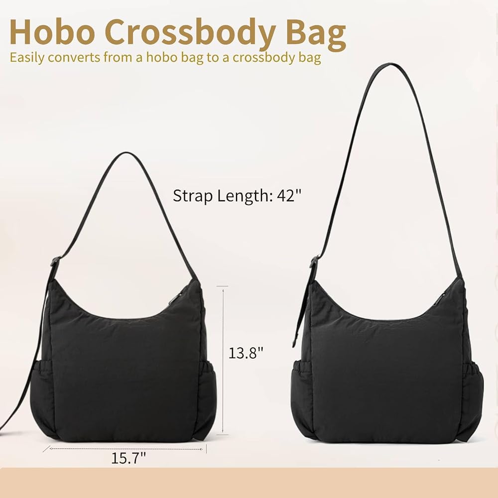 Ultra-light Fabric: Crafted from water-resistant nylon material and features padded fabric. This nylon hobo bag weighs only 0.45 pounds, providing a comfortable, lightweight feel and a level of protection.