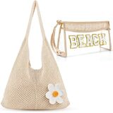 Multifunctional Bag Set: you will receive 1 stylish khaki crochet beach bag and 1 white letter cosmetic bag, you can use them together or separately, suitable for all occasions, bringing convenience to your life while enhancing your sense of fashion