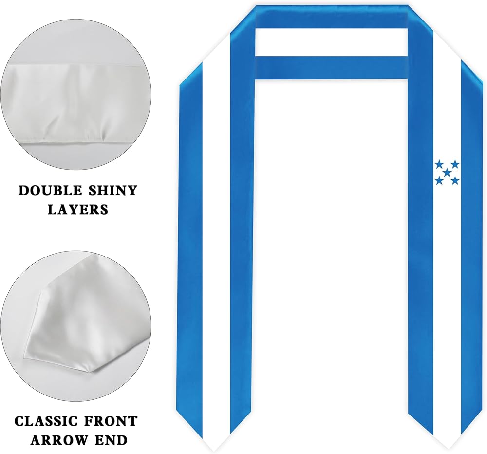 • APPEARANCE: Classic stole style with vibrant flag-inspired designs that symbolize international academic achievement