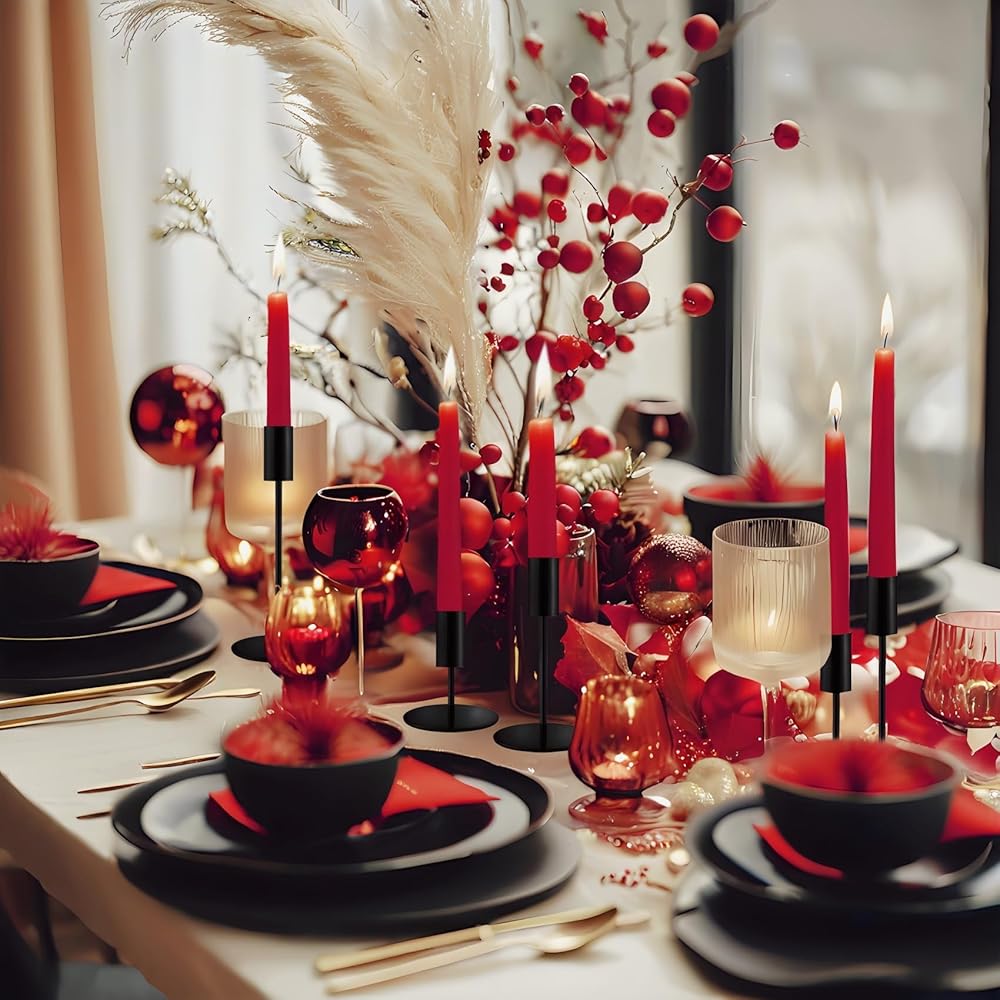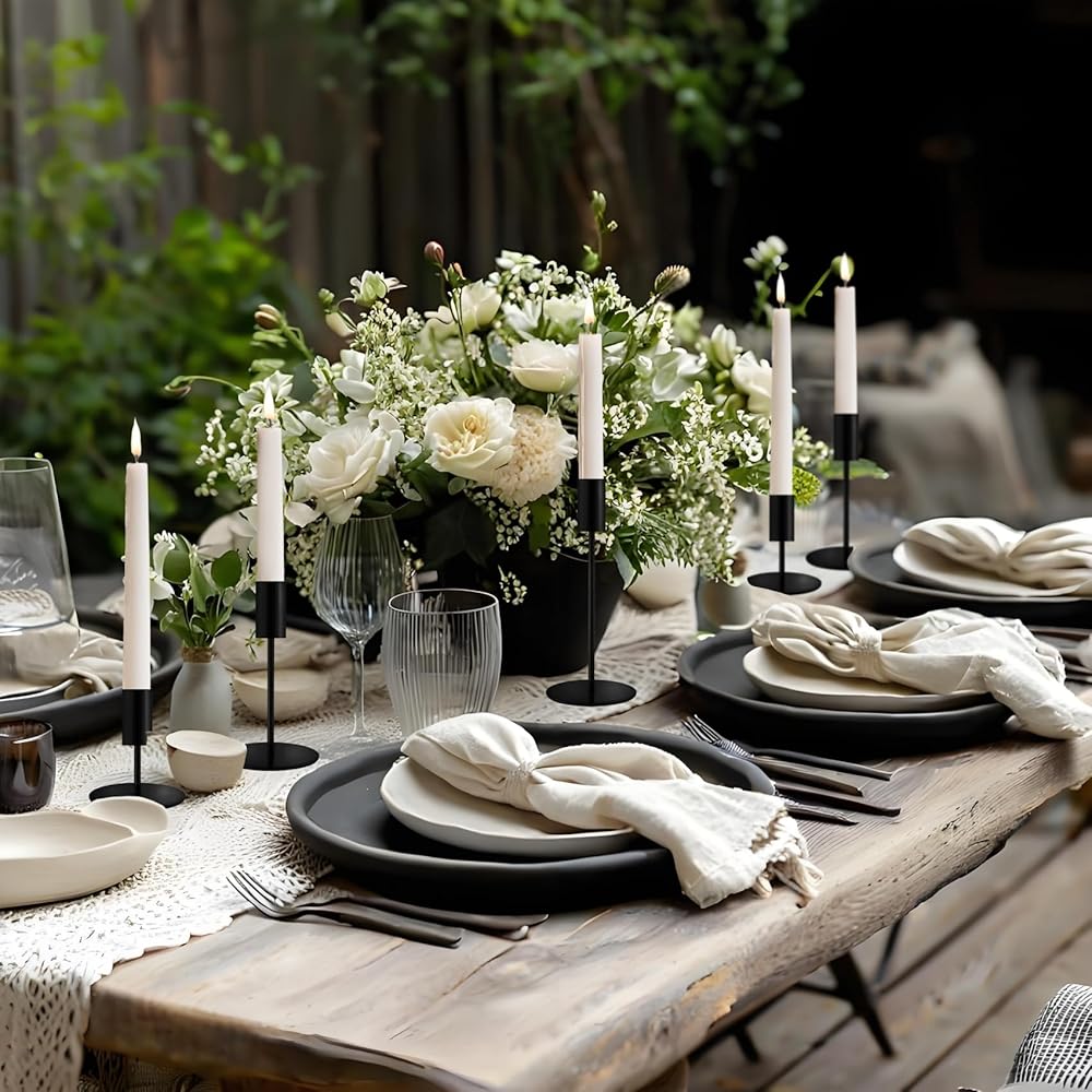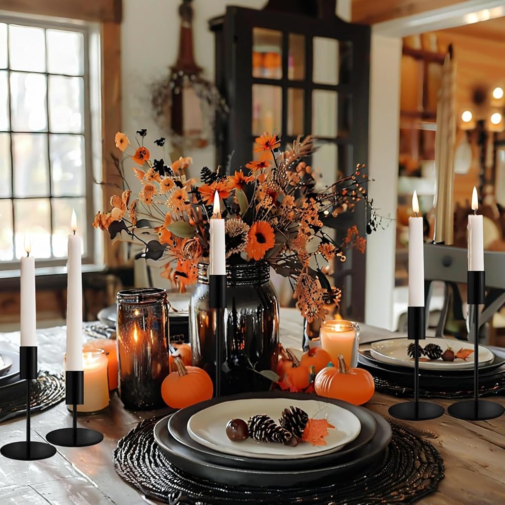 Matte Black Taper Candlestick Holders,Taper Candle Holders Set of 6,Metal Taper Candle Sticks Stand Holders,Modern Decorative Candle Holders for Wedding Certerpieces,Festive, Mantel,Home,Party