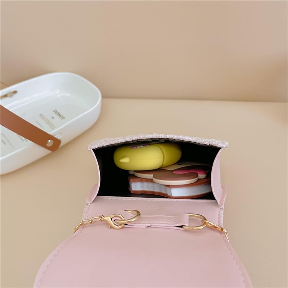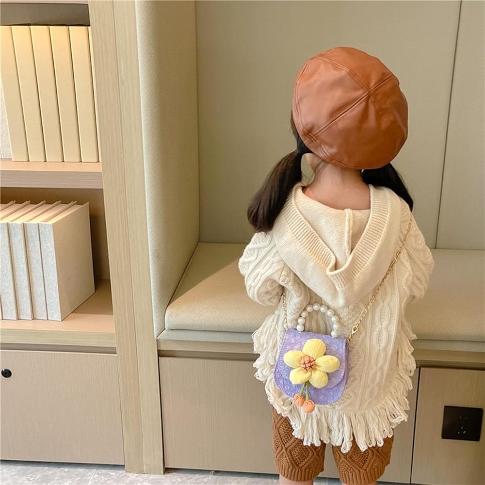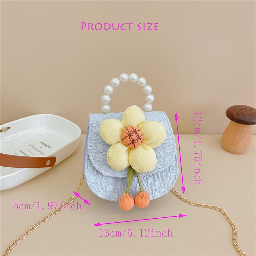 ZOONAI Little Girls Purse,Cute Flower Crossbody Handbag Shoulder Bag with Pearl Handle, Detachable Gold Chain, Kids Small Handbag Birthday Gifts for Girls