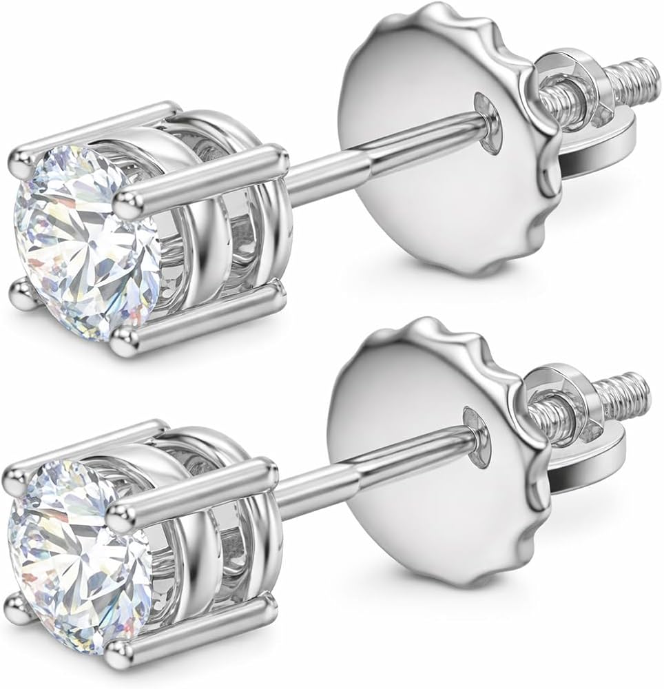 Classic solitaire studs featuring diamonds nestled in four-prong settings and screw-on backings