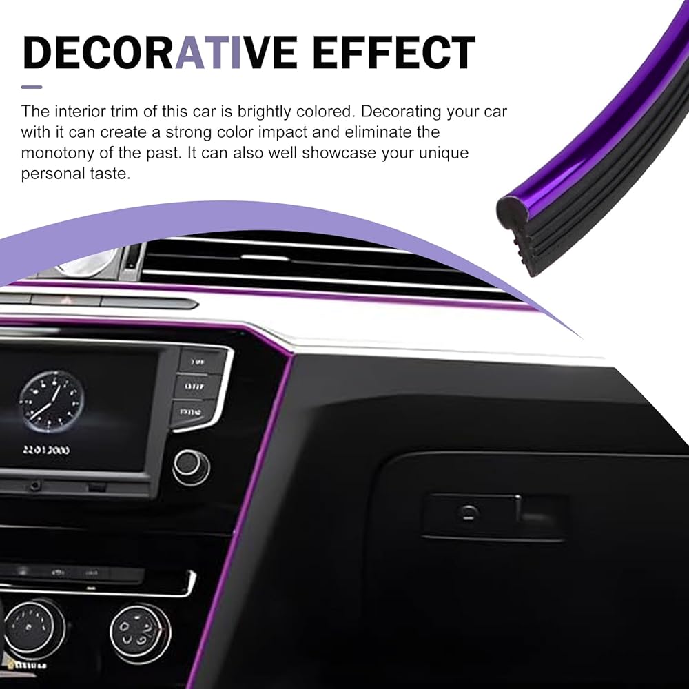 MOXRUQ Car Interior Moulding Trim Strip, 32.8ft Electroplating Car Interior Filler Insert Strips for Door Dashboard, Molding Line, DIY Vehicle Interior Flexible Strip with Install Tool (Purple)