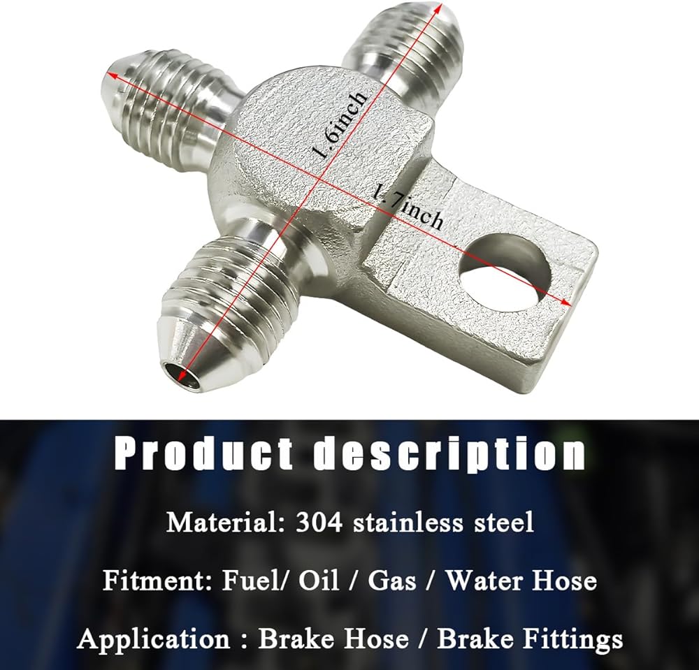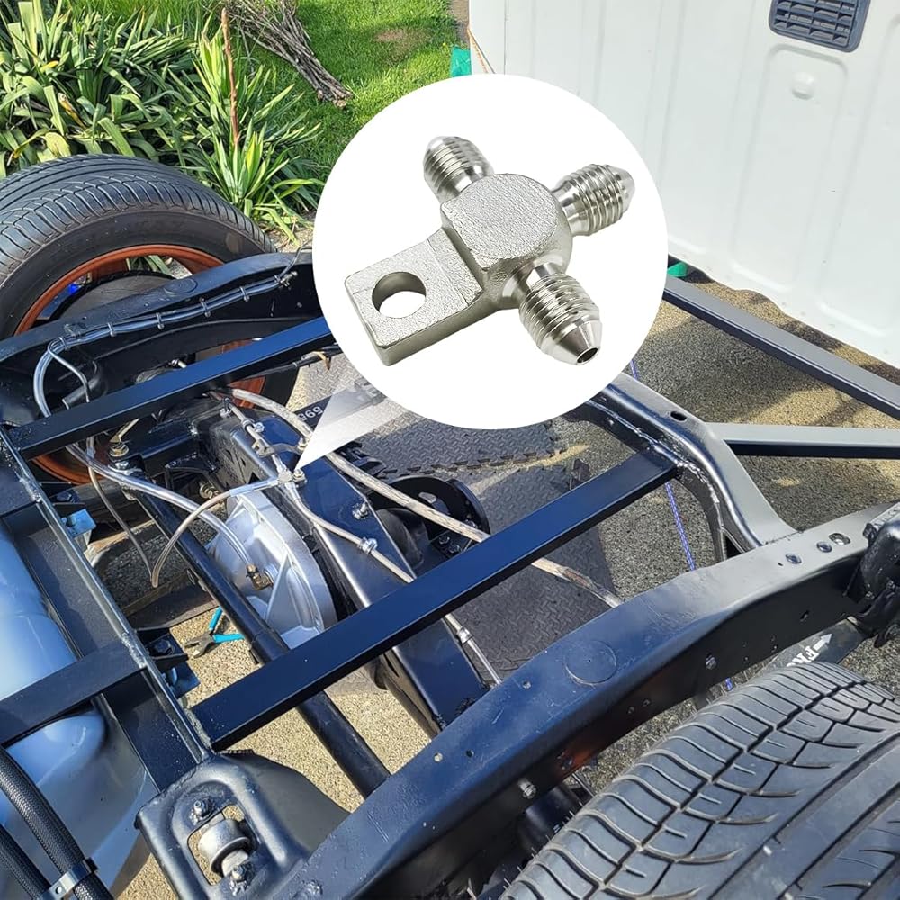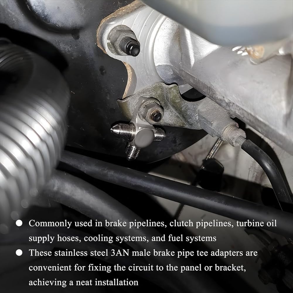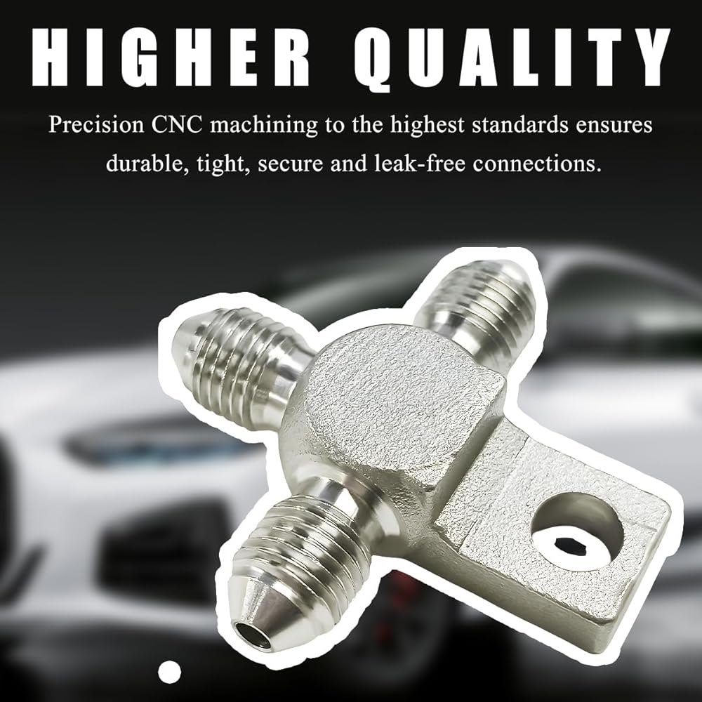 3AN Tee Adapter Connector, Stainless Steel Durable Male Brake Line Tee Block Fitting Adapter with Mount Tab, Sealed Convenient Male Flare Union Fuel Fitting Adapter