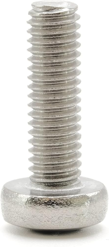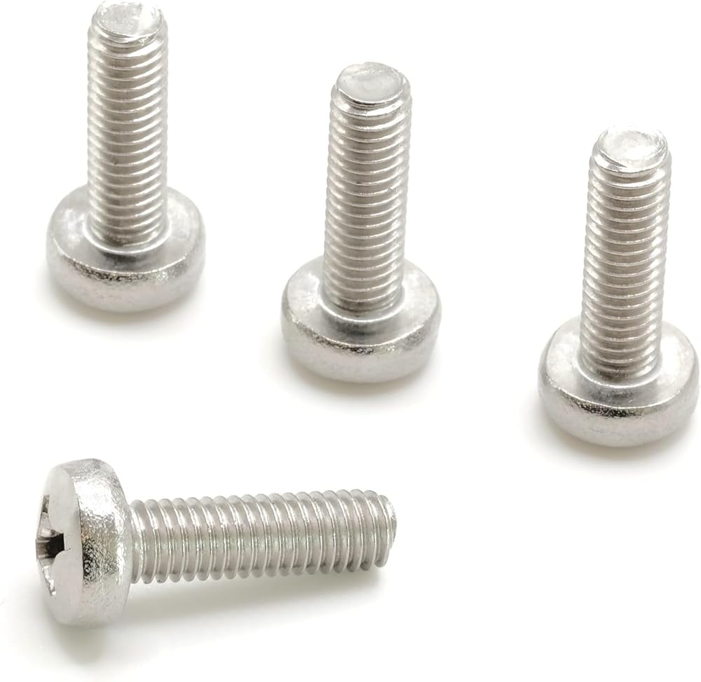 SPECIFICATIONS: Metric size M6 x 20mm long stainless machine screws with a 1mm thread pitch. Pan head with a Philips drive. Blunt Point. Black plated stainless steel finish for corrosion resistance and appearance. You will receive One set of metric screws, four screws in total. Four stainless black machine screws.