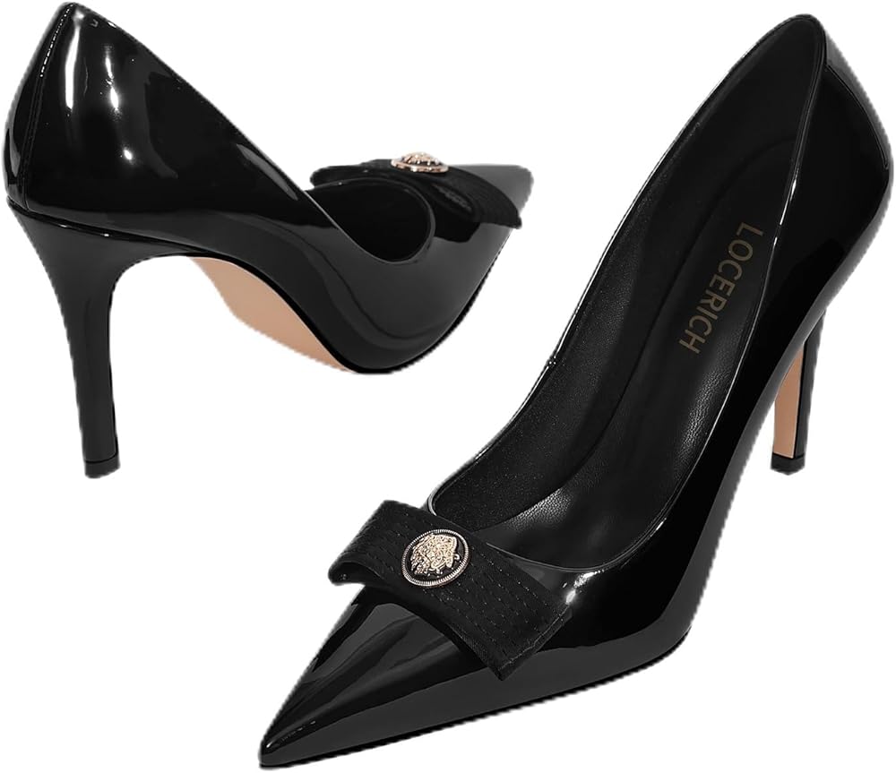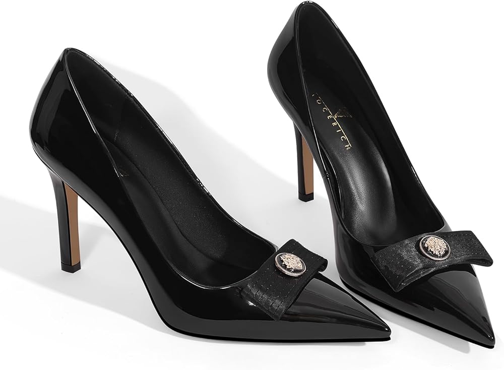 Timeless Design:With a classic pointed toe, bow, and metallic Buckle detail, the trendy heels embody a simple and elegant aesthetic, making them a must-have staple for any wardrobe.