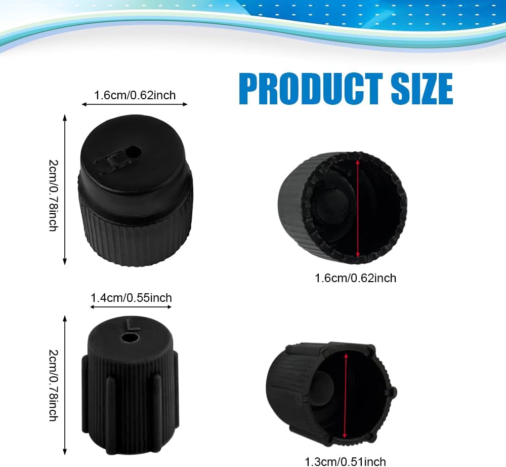 [Material] : These replacement valve caps for car air conditioning are made of high-quality ABS plastic material, which is not easy to rust, good toughness, good weather resistance, not easy to break and deformation, high temperature resistance, strong impact resistance, light and easy to use, strong and durable, can maintain excellent performance for a long time and provide a long service life