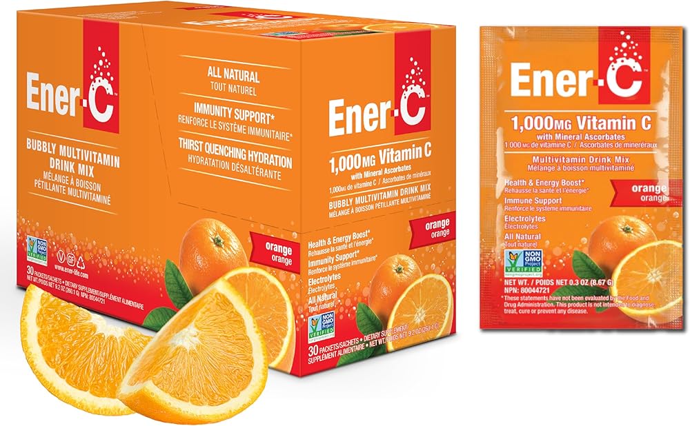 • HEALTH ON THE GO: Ener-C Multivitamin Drink Mix comes in the small single use portable vitamin c powder packets that fit into your bag and are perfect to take with you wherever you go. Just cut the pack and pour it in your water bottle, drink and keep your immunity up on your next airplane ride, bus trip, and every day in the office with the Ener-C Multivitamin Drink Mix, an ideal replacement for a sports drink, energy drink and other unhealthy beverages.