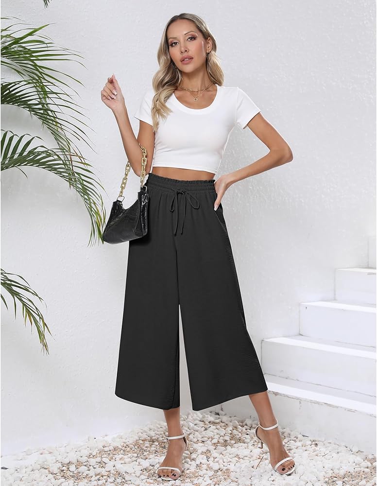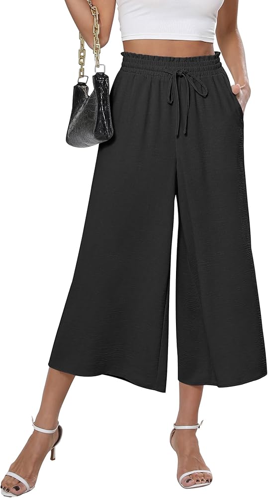 Style: Flowy Pants, Wide leg pants, Elastic waist design, Adjustable tie knot design, Lightweight and flowy pants, loose pants for women with pockets.