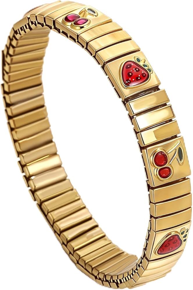 • Trendy Gold Bangle Bracelet: Our gold italian bracelet features a stylish cherry and strawberry print design, and creating a beautiful vintage style with timeless charm that can be worn with any outfit. You will can make you stand out from the crowd