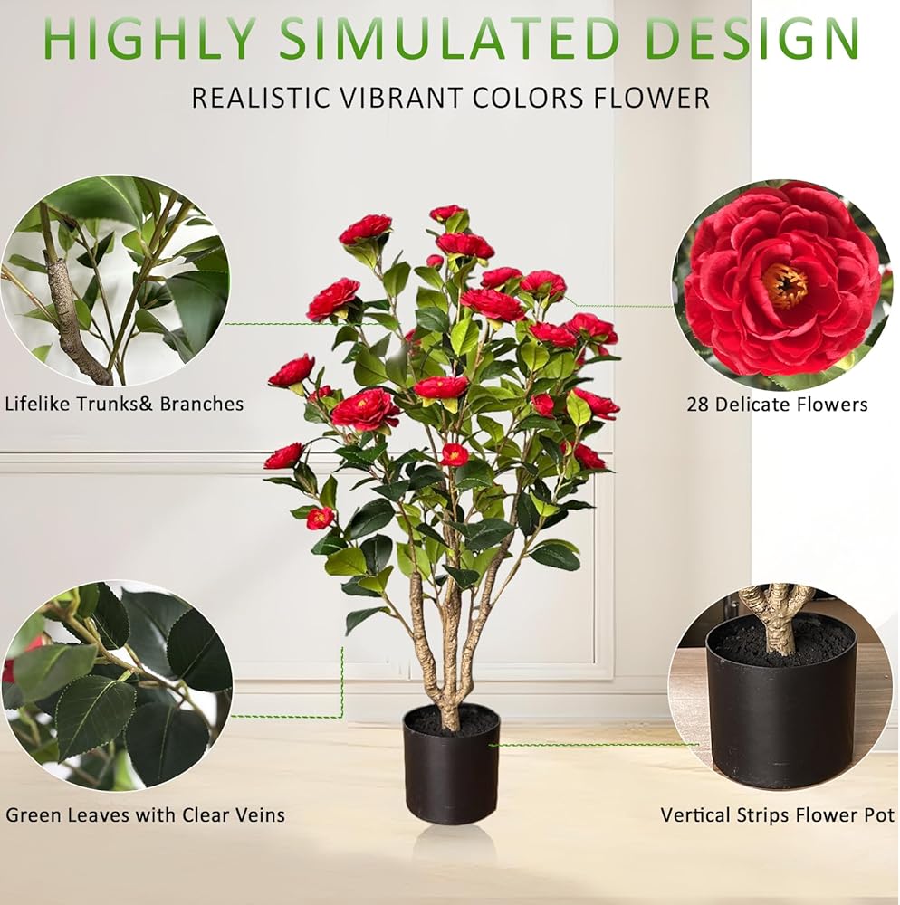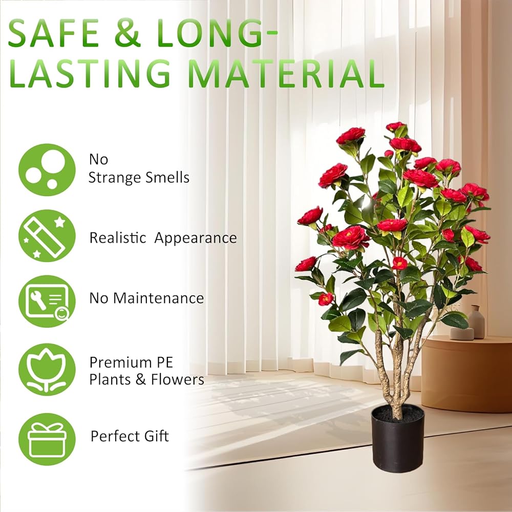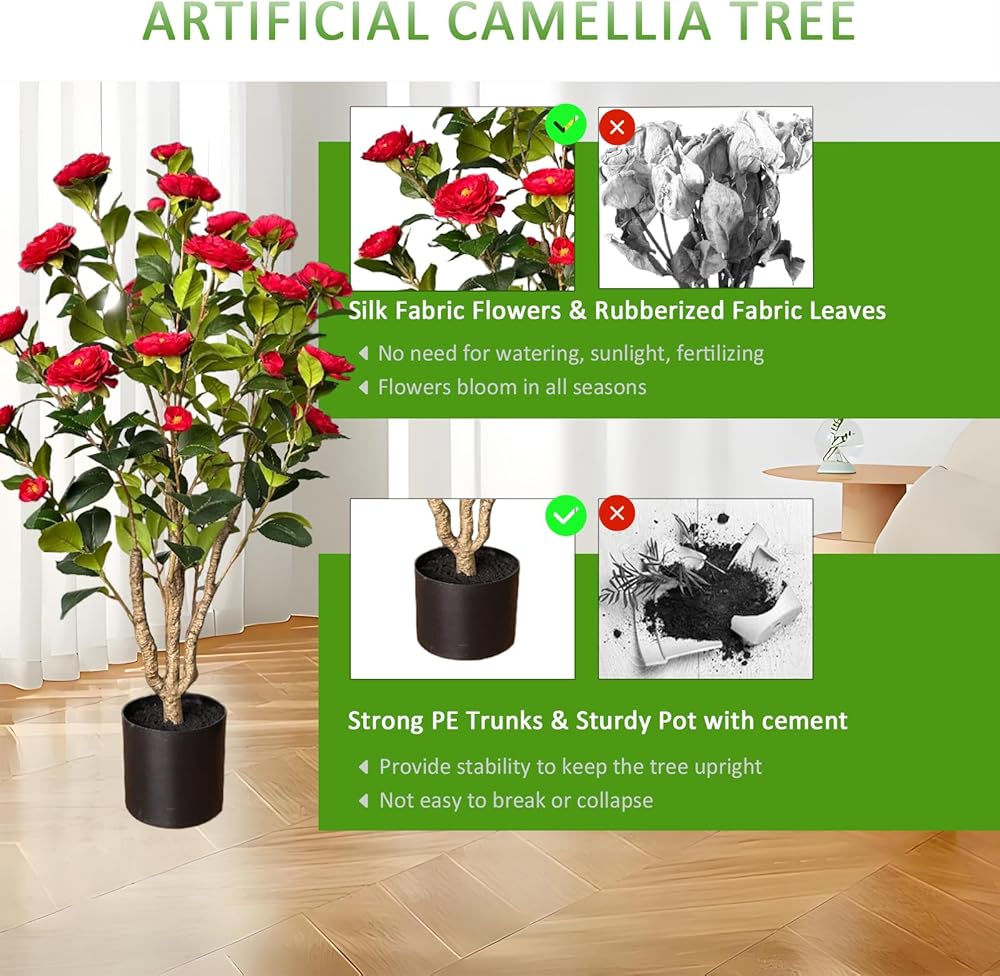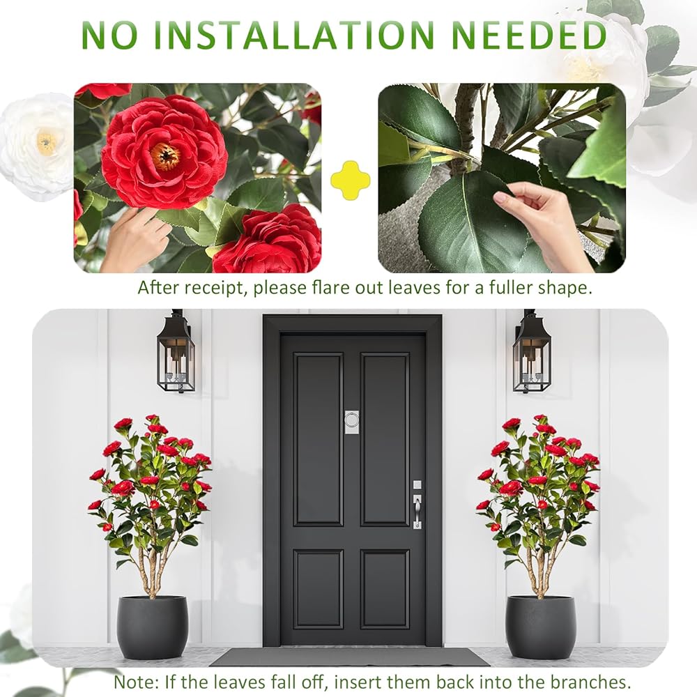 [No Maintenance Required] Artificial camellia tree flowers and green leaves are made of high-quality silk, which is able to keep the bright colors, Simply wipe down the leaves occasionally to keep them looking fresh and vibrant.