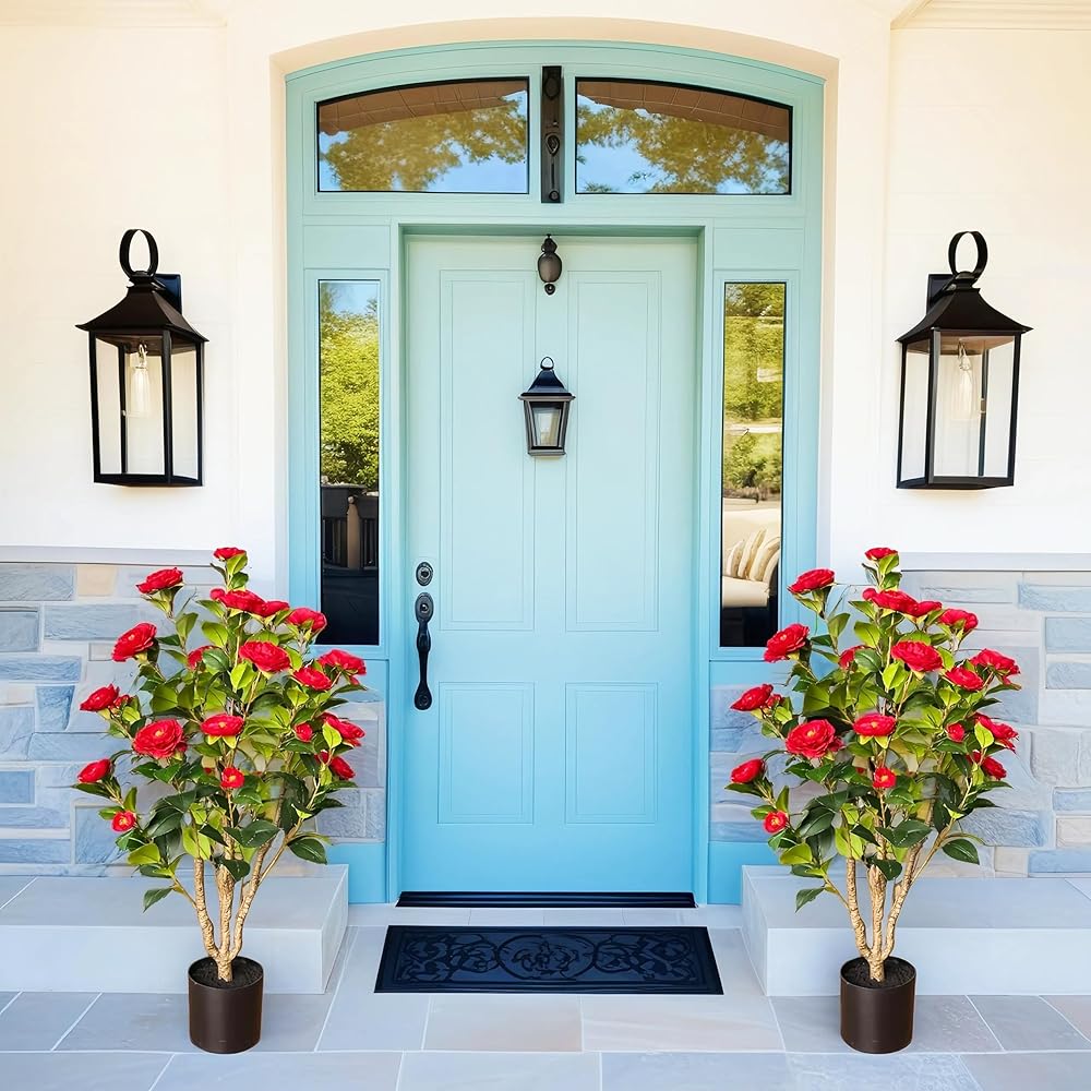 [Perfect Decoration] This artificial Camellia tree with 28 Blooming Flowers adds a sense of beauty to any places, like living room, front porch, office, entryway, cafe shop, and more. For outdoor, we recommend you to put the artificial tree in the place with eaves to avoid direct sunlight. Also, it is a thoughtful housewarming gift for your friends or colleagues.