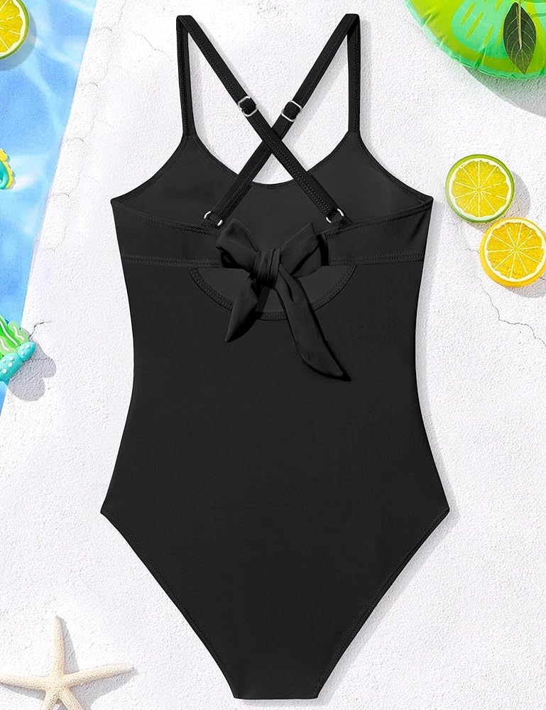🏖️【Unique Design】This girls one-piece swimsuit features a front criss cross design, adjustable tie back, and a removable chest pad. The pleated design helps to shape the abdomen and create a slim waistline. The secure and comfy fit ensures your daughter can move freely and enjoy the fun in the water!