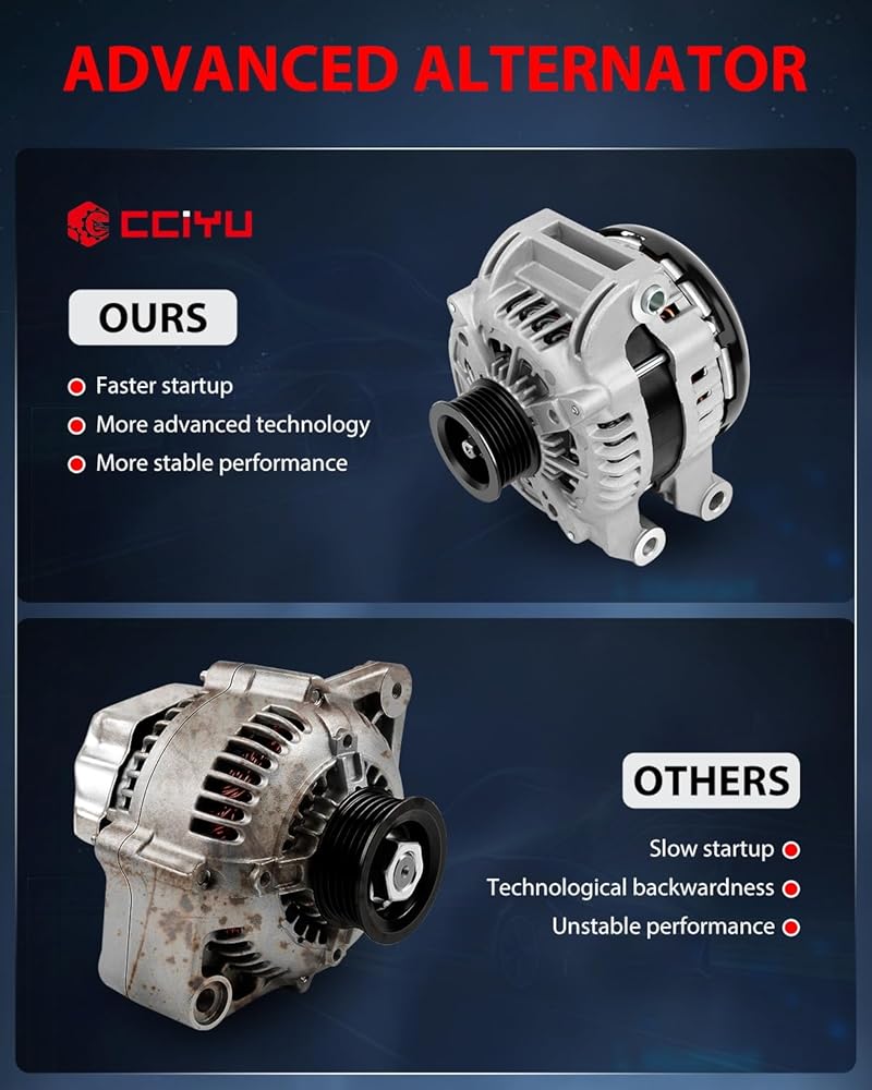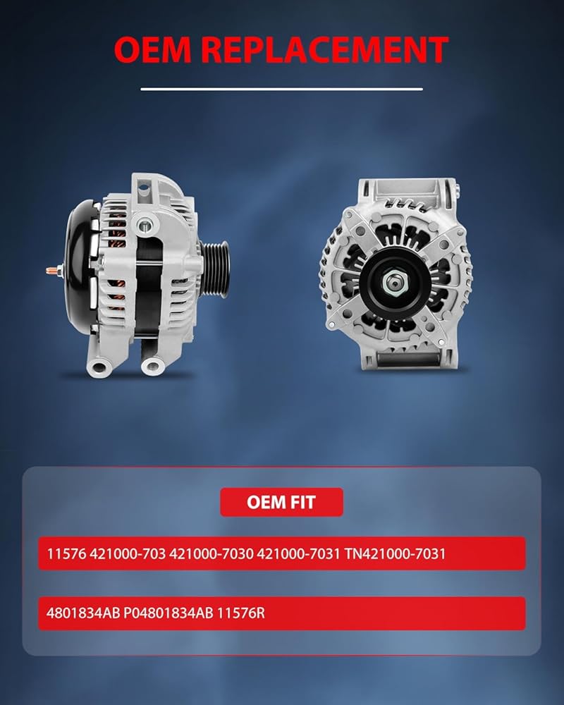 cciyu New Alternator 11576 Fit for 2011-2018 For Dodge for Challenger,2011-2018 For Dodge for Charger,2011-2018 For Dodge for Durango,2011-2018 For Jeep for Grand Cherokee