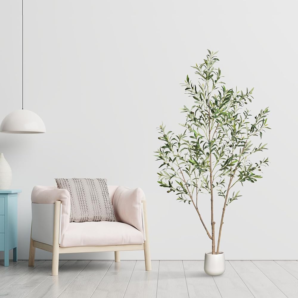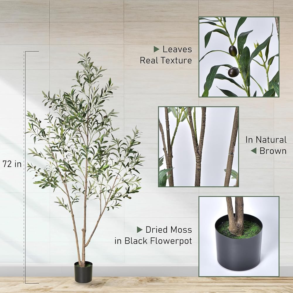 Elegant Artificial Olive Tree: Our meticulously crafted artificial olive tree, featuring premium silk leaves and fruits, is the perfect accent for any space. Its lifelike appearance and gentle sway in a breeze create a naturally inviting atmosphere.