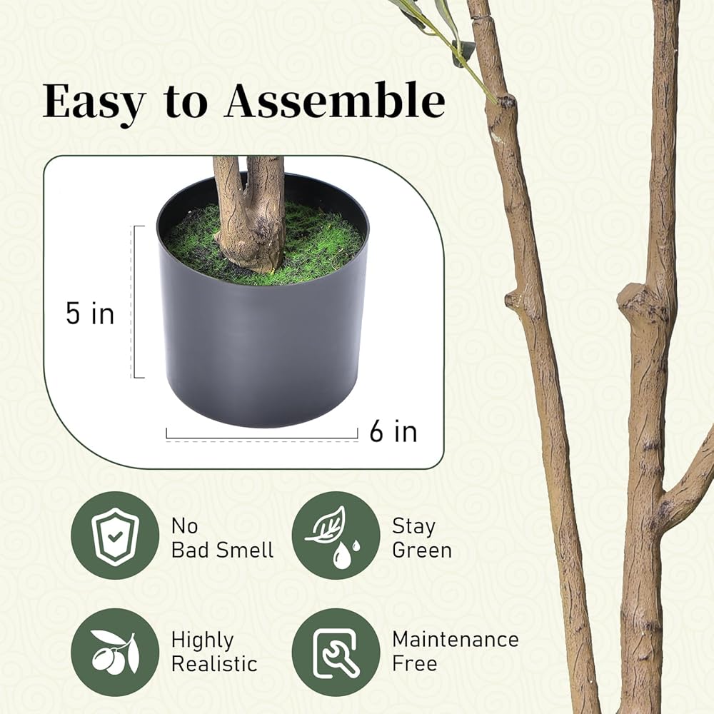 Easy Assembly: Our 6 ft olive tree is easy to assemble and can be shaped to your desired style. It comes with a non-decorative planter, allowing you to choose a pot that suits your decor.