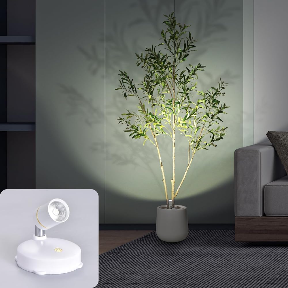 Artificial Olive Trees with Warm LED Spotlights, 6FT Tall Fake Olive Trees for Indoor, Faux Olive Silk Tree with Realistic Leaves Fruits for Home Decor and Housewarming Gift Christmas Decoration