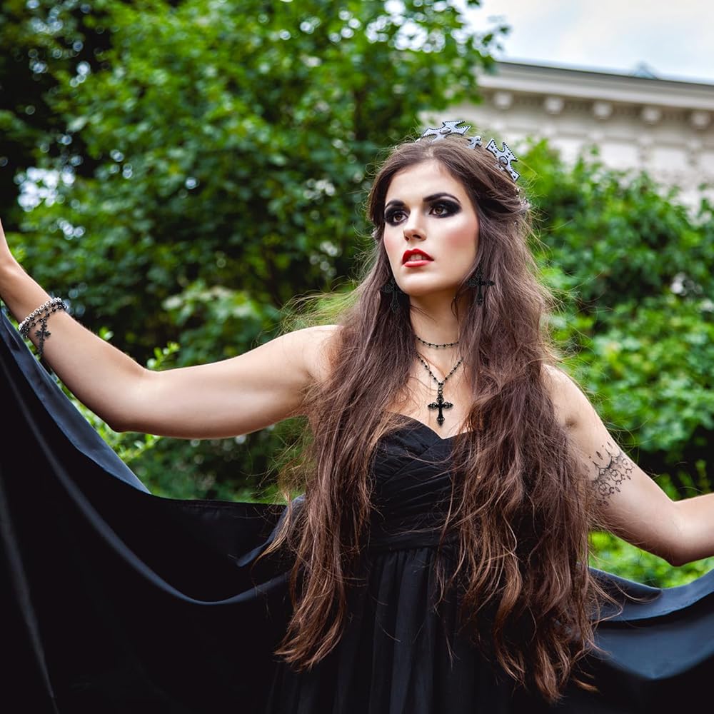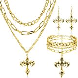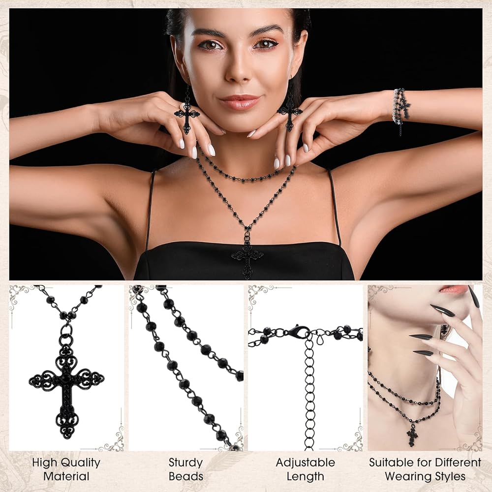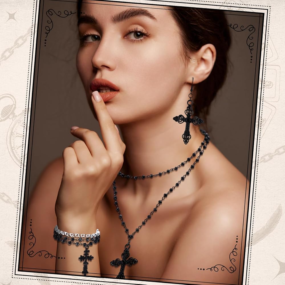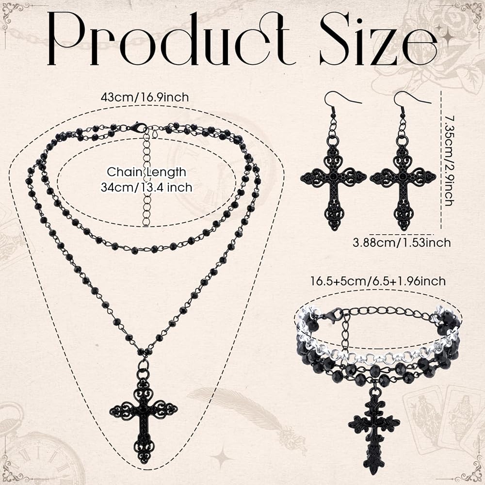 This Gothic jewelry set includes necklace, bracelet, and earrings, with cross elements and gothic style, making it nice for wearing at various parties and eye catching.