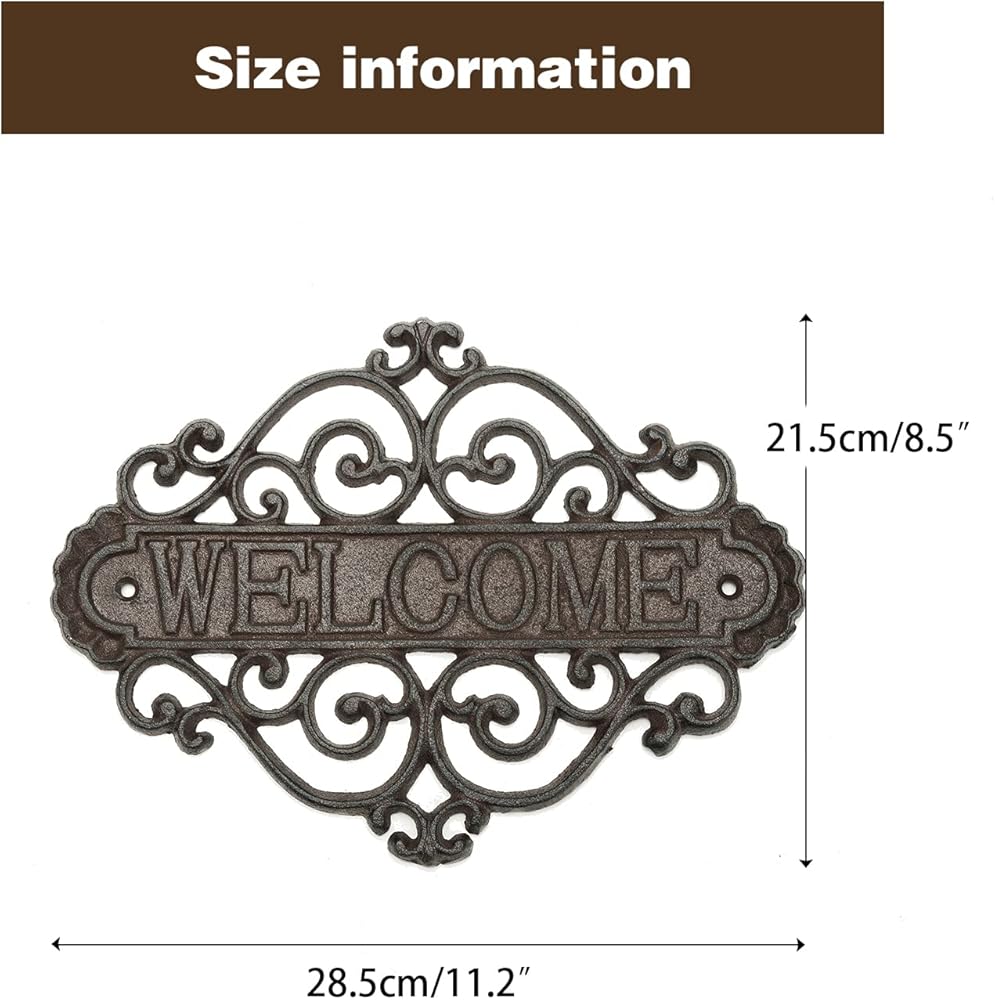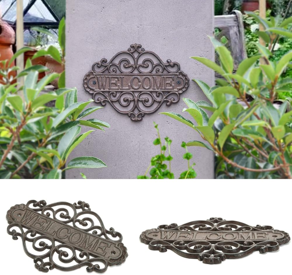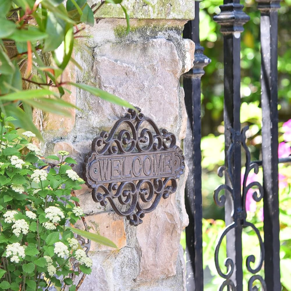 Sungmor Vintage Cast Iron Flower Shape Wall Mount Welcome Sign | Wall Decor Welcome Tag | House Plaque Garden Bar Cafe Store Gate Door Sign Wall Mount Decoration