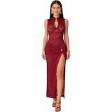 JUMISEE Women's Sexy High Slit See Through Lace Maxi Dress Elegant Sleeveless Hollow Out Bodycon Long Dress Cocktail Dress Party Evening Gown