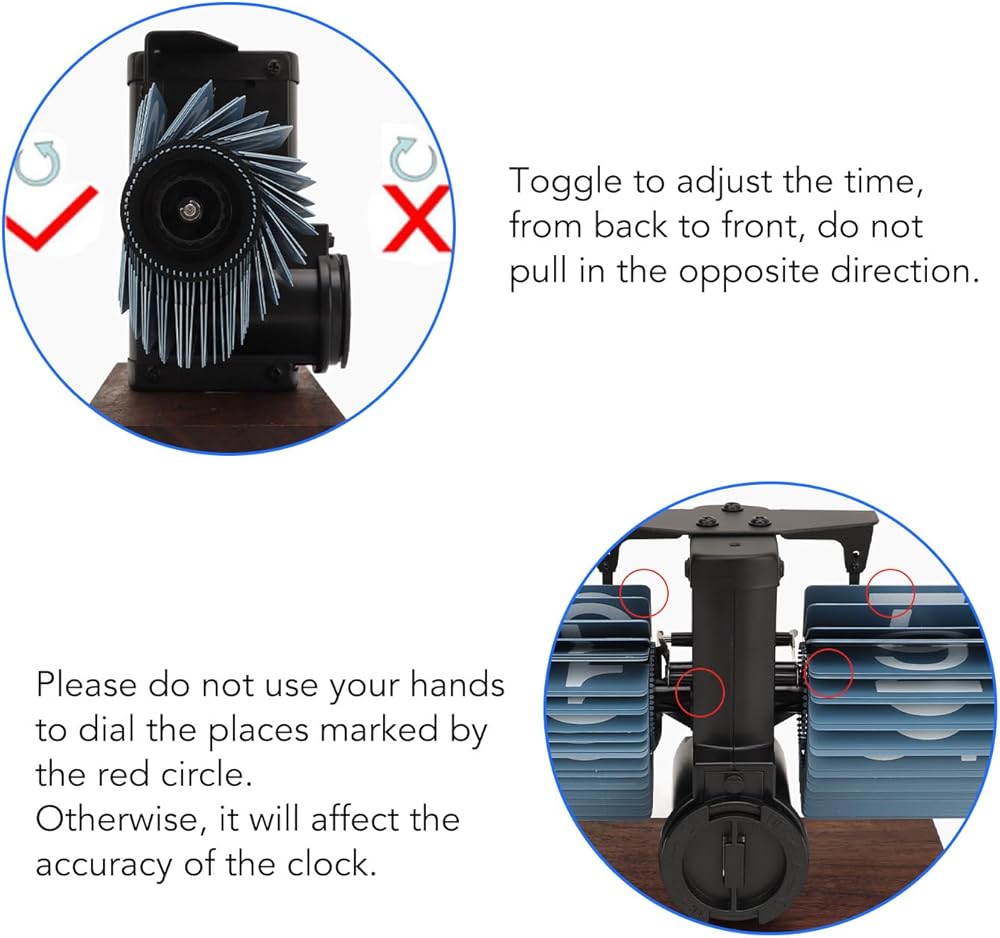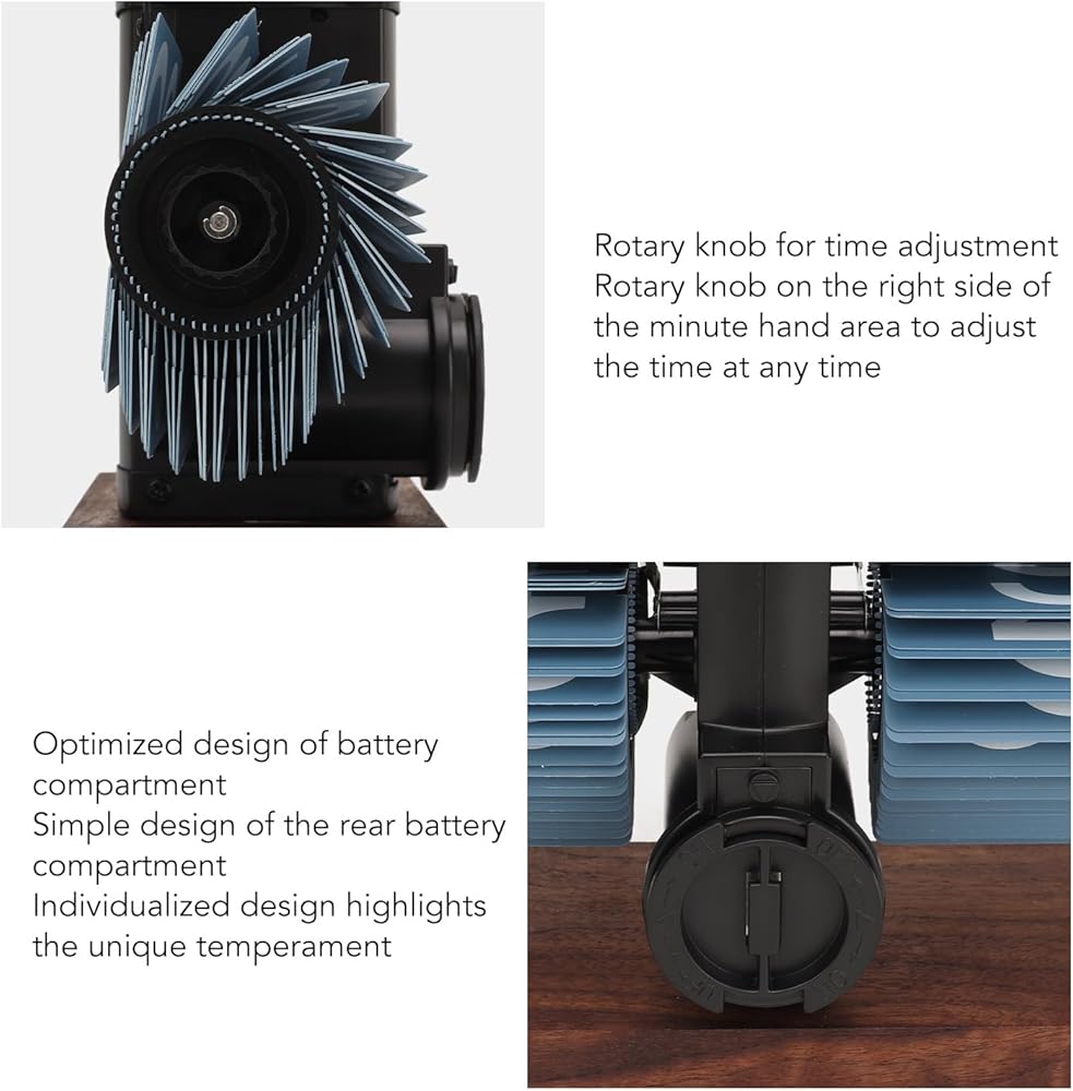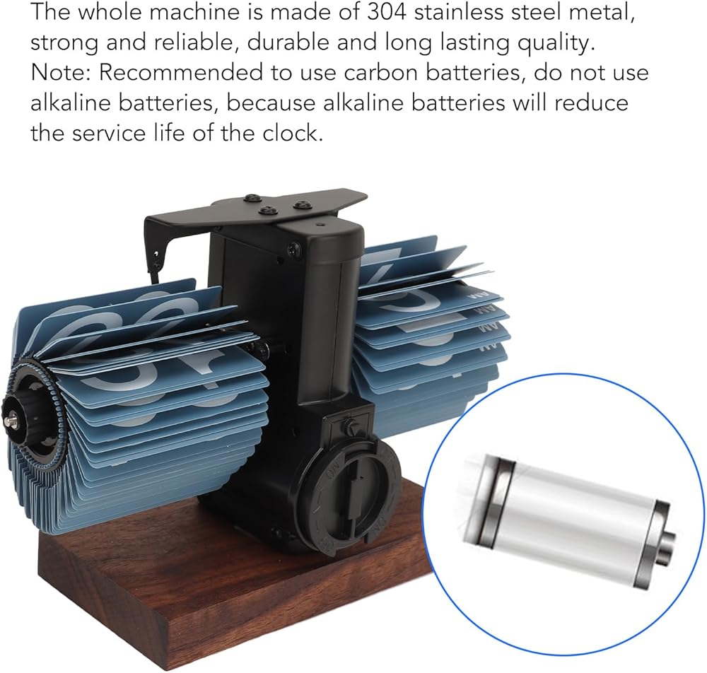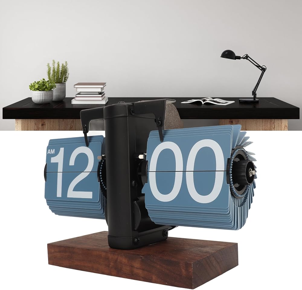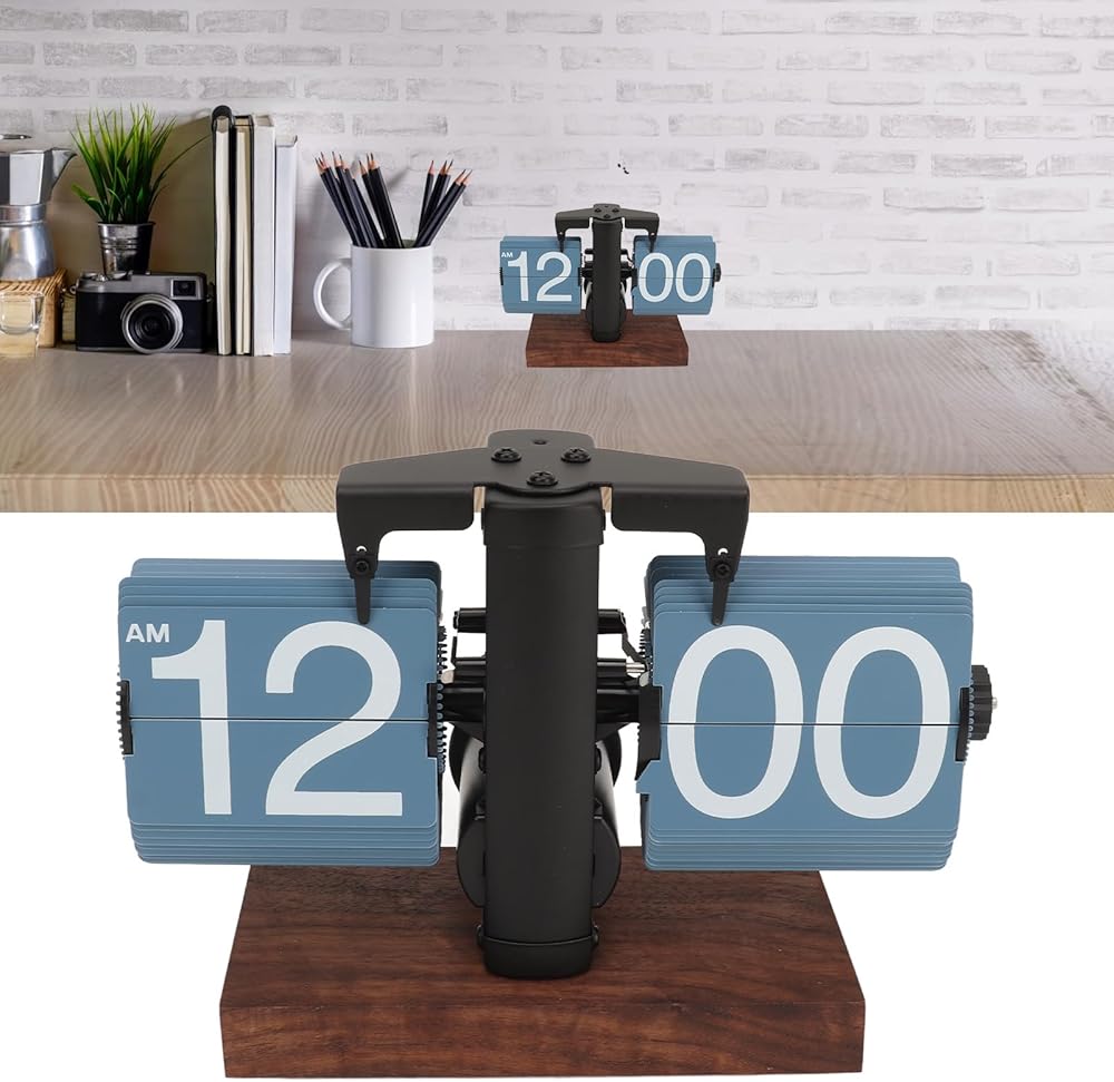 Clear Display: This vintage flip clock is designed with legibility in mind, featuring prominently displayed numbers on each flip card. These large numerals ensure that the time can be easily read from across the room, enhancing the usability of the clock