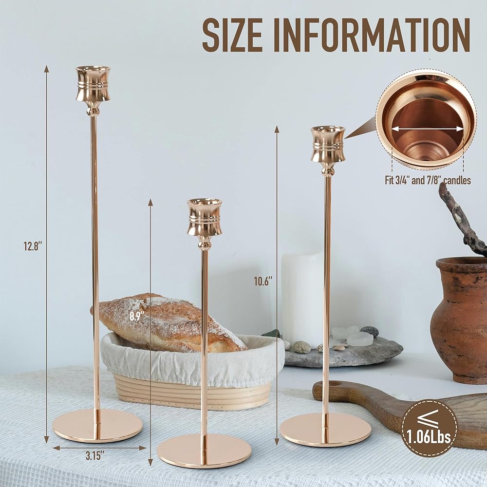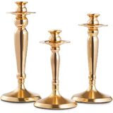 3PCS Taper Candle Holders Set, Gold Vintage Candlesticks for 3/4 and 7/8 Inch Candles with Wedding Dining Table Centerpiece Decor and Fireplace Mantel Housewarming Gift (6521C)