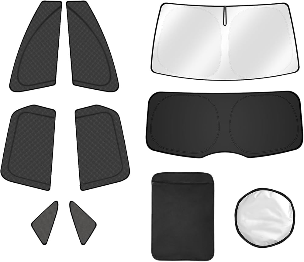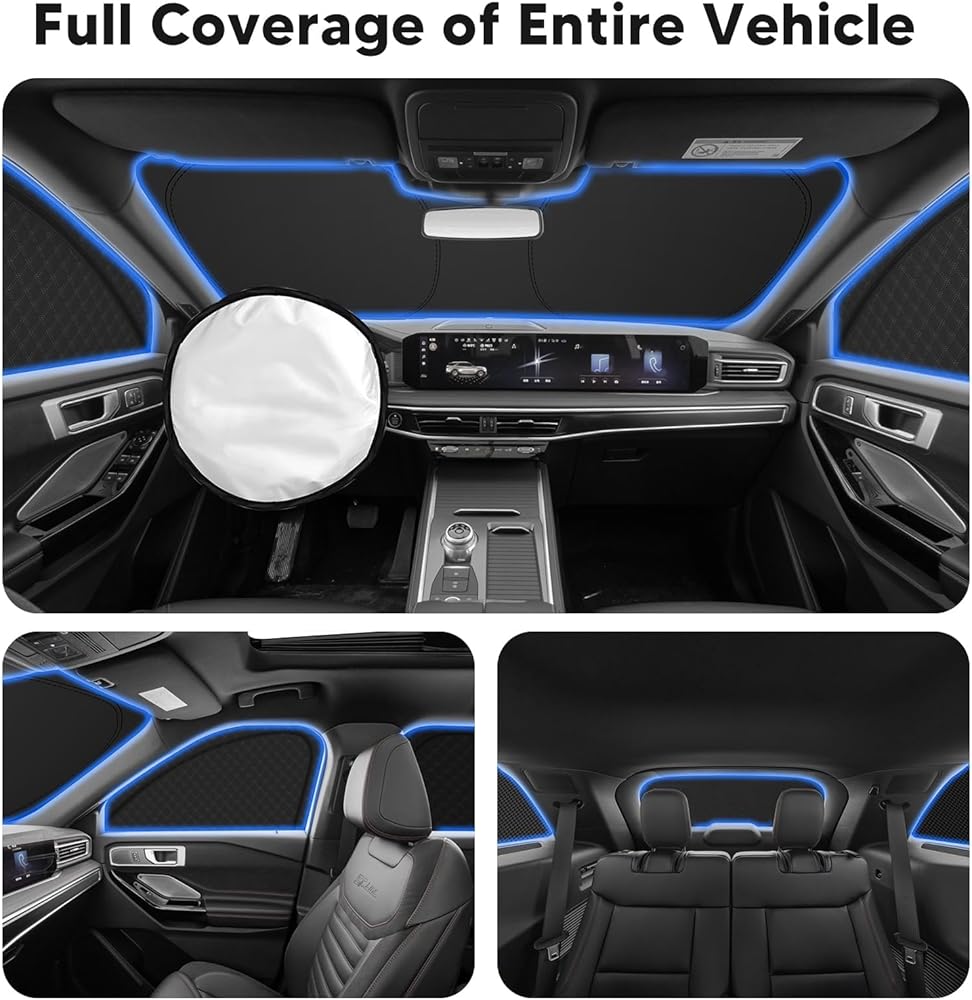 FIILINES 8PCS Car Windshield Sun Shade for Ford Escape 2020-2025 2026 Accessories Double Layer Thicken Car Side Cover Full Windows with Zipper Window Rear Triangular UV Rays & Privacy Protection