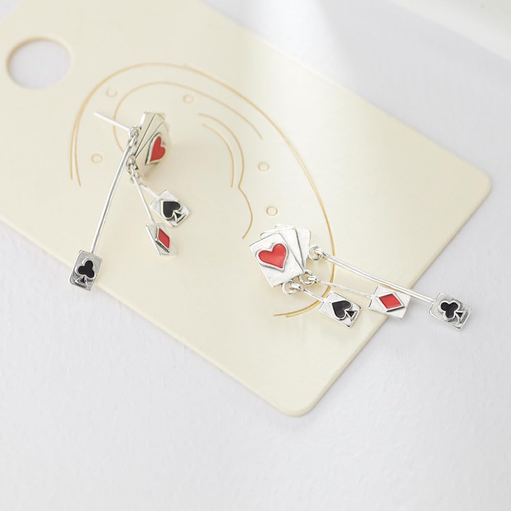 KEQ Poker Hoop Earring S925 Sterling Silver Casual Casino Game Huggie Jewellery Women's Sister Party