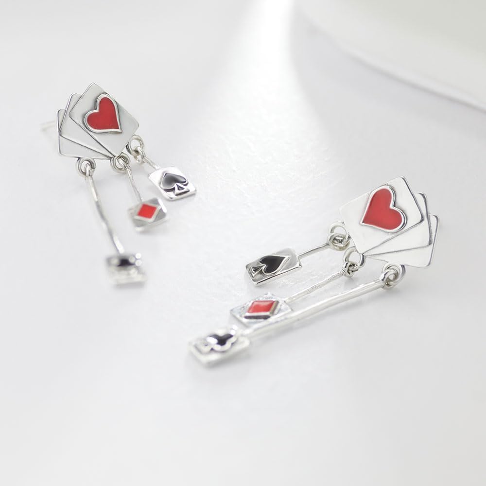 CHUNKY SMALL VEGAS EARRINGS LOVER EARRING - Unique alice in wonderland earrings has red and black Enamel Card Huggie Playing Card Hoop Earrings for women are a classy choice that accessorizes any look with a touch of trendy style. slight differences in pattern and color. Our Team makes the latest trends accessible for all.