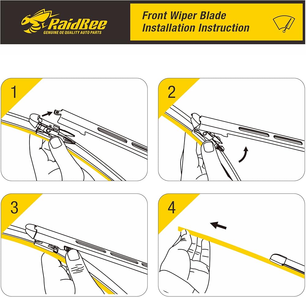 • Easy installation: RaidBee wiper blade is very easy to install. At the same time, there are the wipers blades installation step diagram and installation video. If you have any questions, you can also ask us.