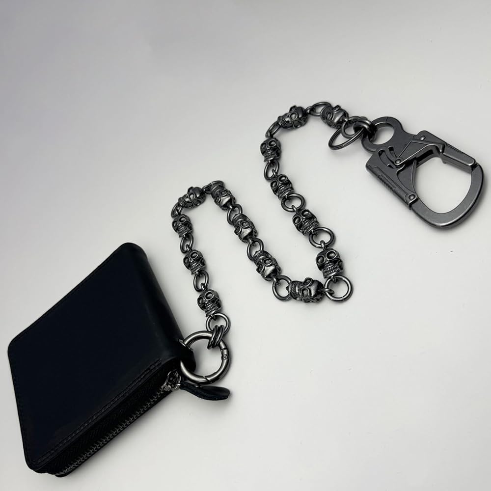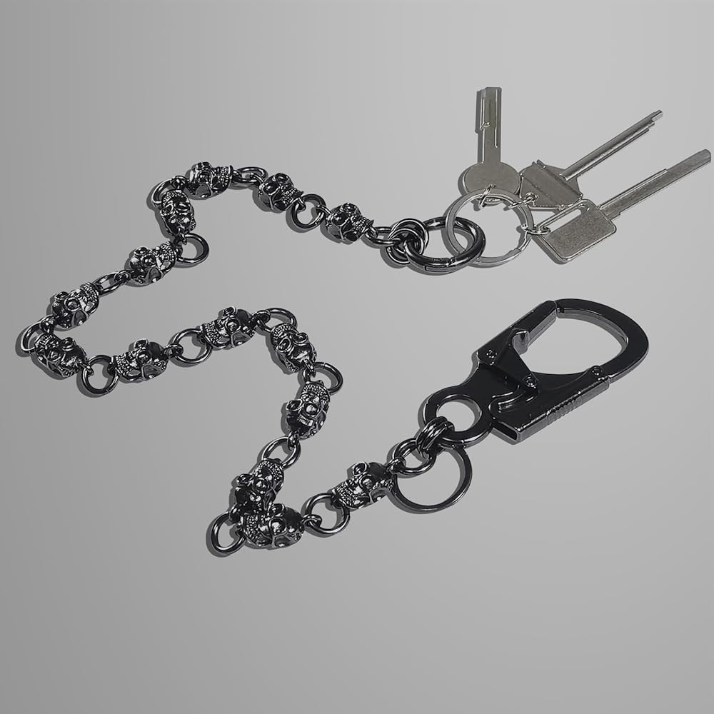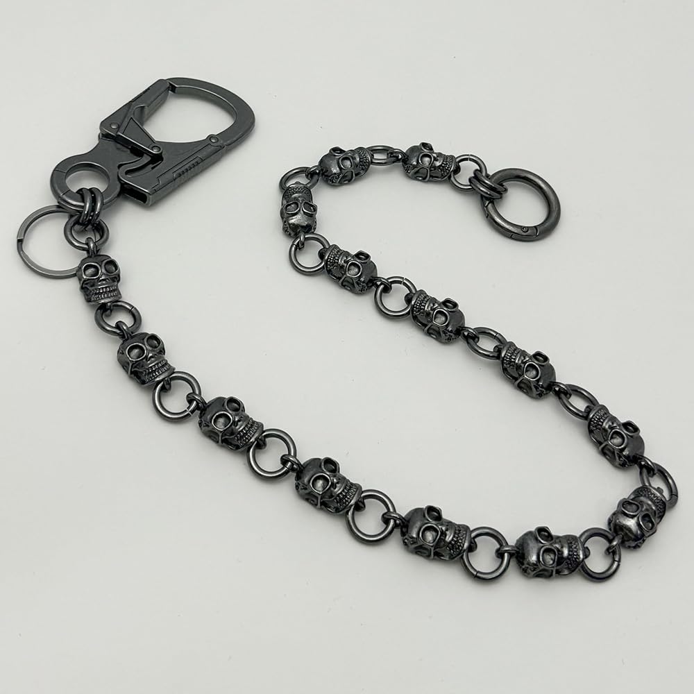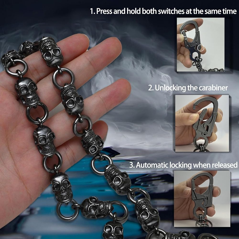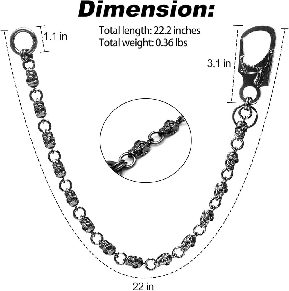 HEAVY MATERIALS:Our jeans chain skulls are made of heavy duty alloy materials.It comes with a durable Double locking carabiner and a metal spring O-ring clip, and two small stainless steel rings are added at both ends to prevent the skulls from turning over when worn