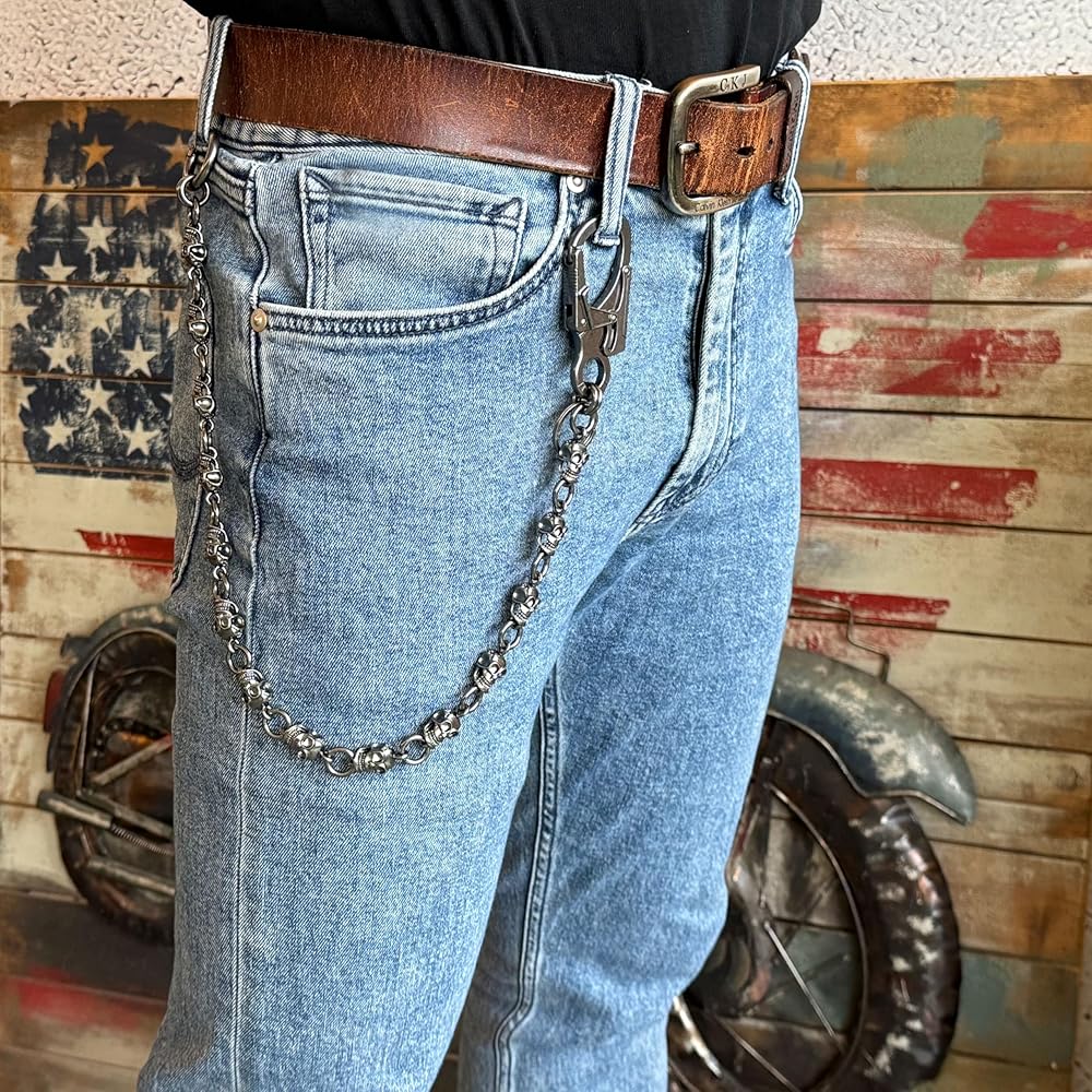 FASHION WEARABLE:This is a cool belt chain, perfect for both men and women. A must for any biker, punk, hip-hop, goth or rock style, it can be worn with jeans, pants, belts, pockets and more. Our chain design is easy to install and remove, adding a touch of uniqueness to your outfit