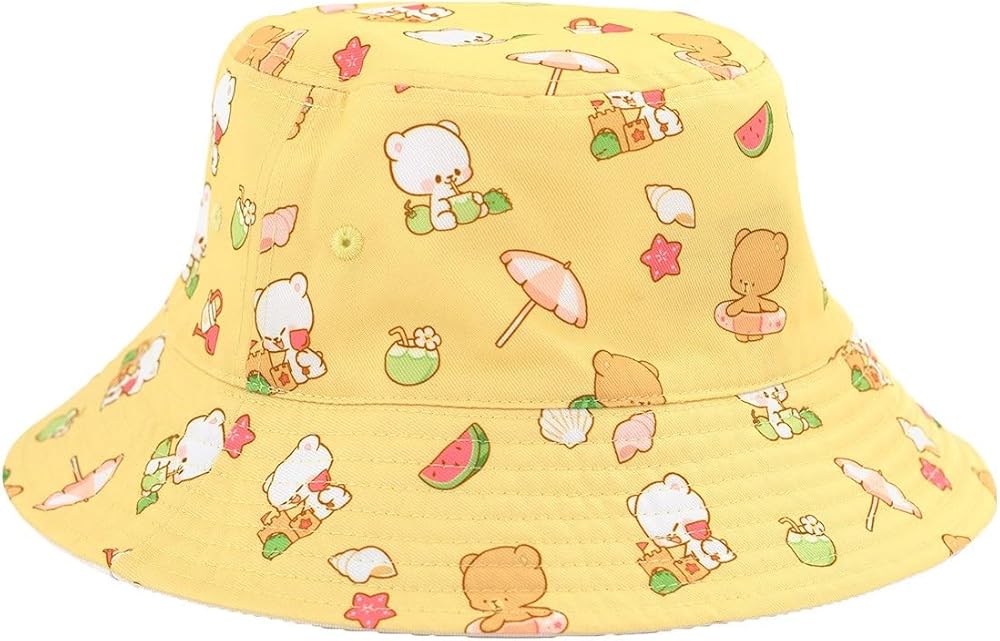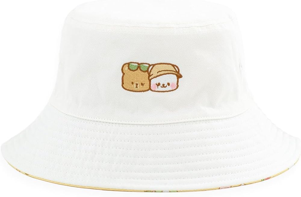 Milkmochabear Milk and Mocha Reversible Bucket Hat in White/Yellow or Light Purple/Midnght Blue Authentic Merchandise Cute