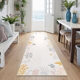 Versatile for Any Room: From bathrooms and living rooms to bedrooms and kids' spaces, this refreshing rug brings a light coastal touch to your home. With gentle marine motifs and muted tones, it complements coastal, boho, modern, and transitional décor