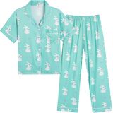 Design: Button down shirt, short sleeve, 3pcs casual sets, chest pocket, lapel collar, matching with a long pajama pants, elastic waistband, casual loose fit. Boys girls pajamas sets featuring comfortable and breathable fabric for your kids!