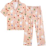 Special Fabric: 95% Polyester and 5% Spandex. Two piece pjs sets made from soft and breathable fabric. Loose fit, good sewing, great for sleeping, casual wear or lounging around the house or yard all day.