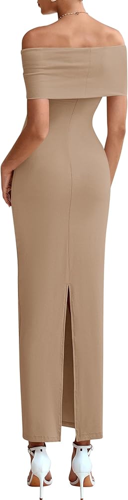 Features: floor-length, off the shoulder design, back slit, formal prom gowns, bodycon long dresses, sexy backless and sleeveless dress, elegant formal dress, eye catching and sultry silhouette maxi dress