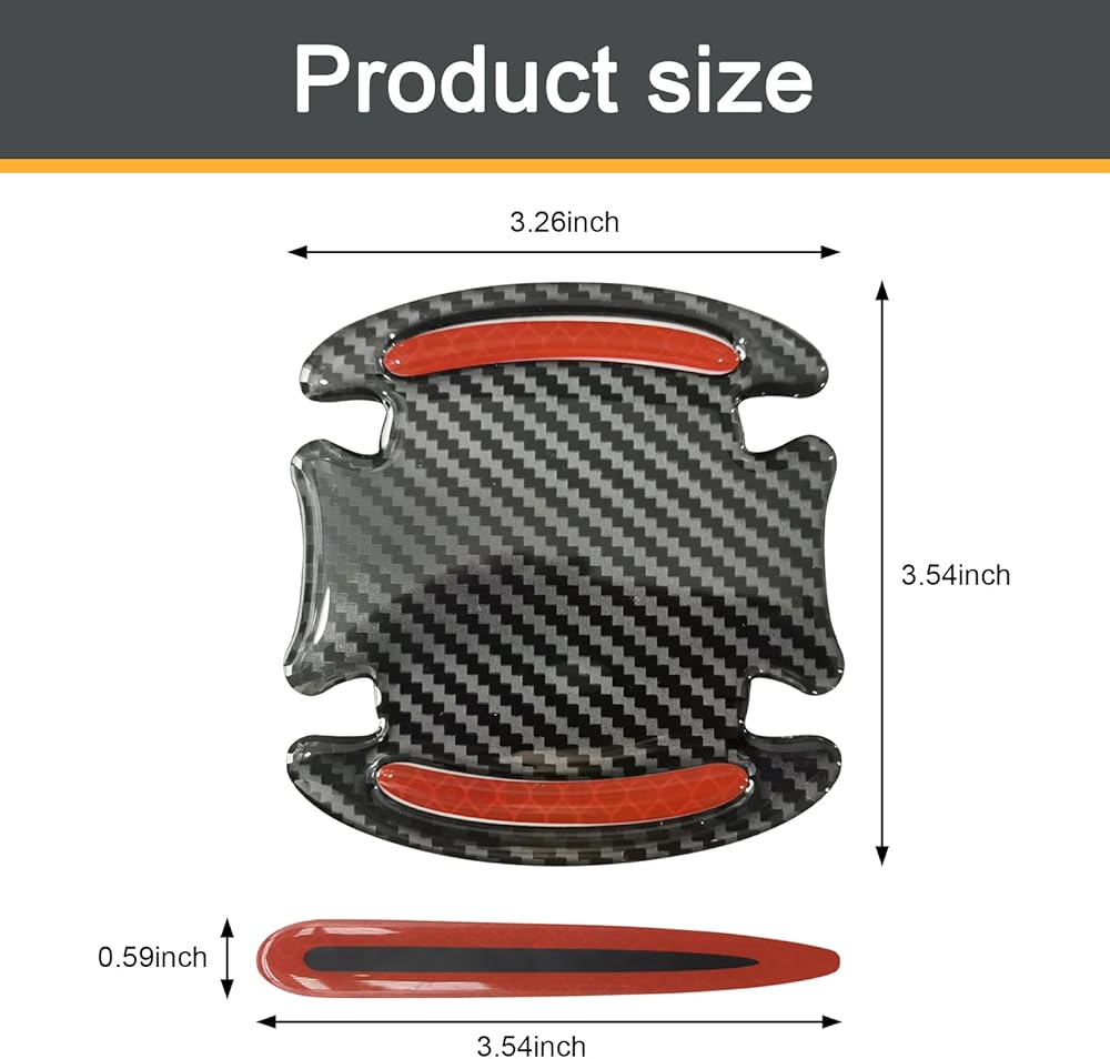 Packaging Details: The package includes 4 door handle stickers with a size of 0.59" x 3.54", and 4 door bowl stickers with a size of 3.54" x 3.26", which meet the needs of use. Suitable for most pull-out car door handles.