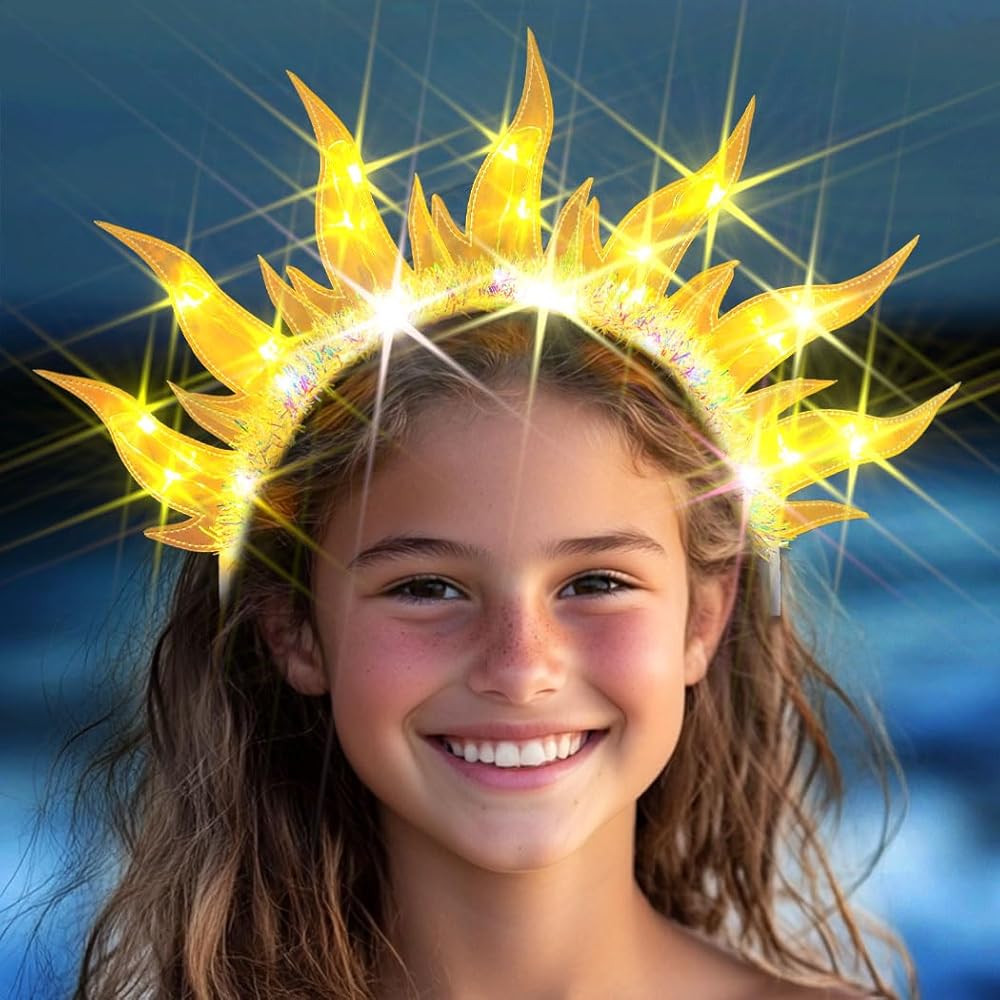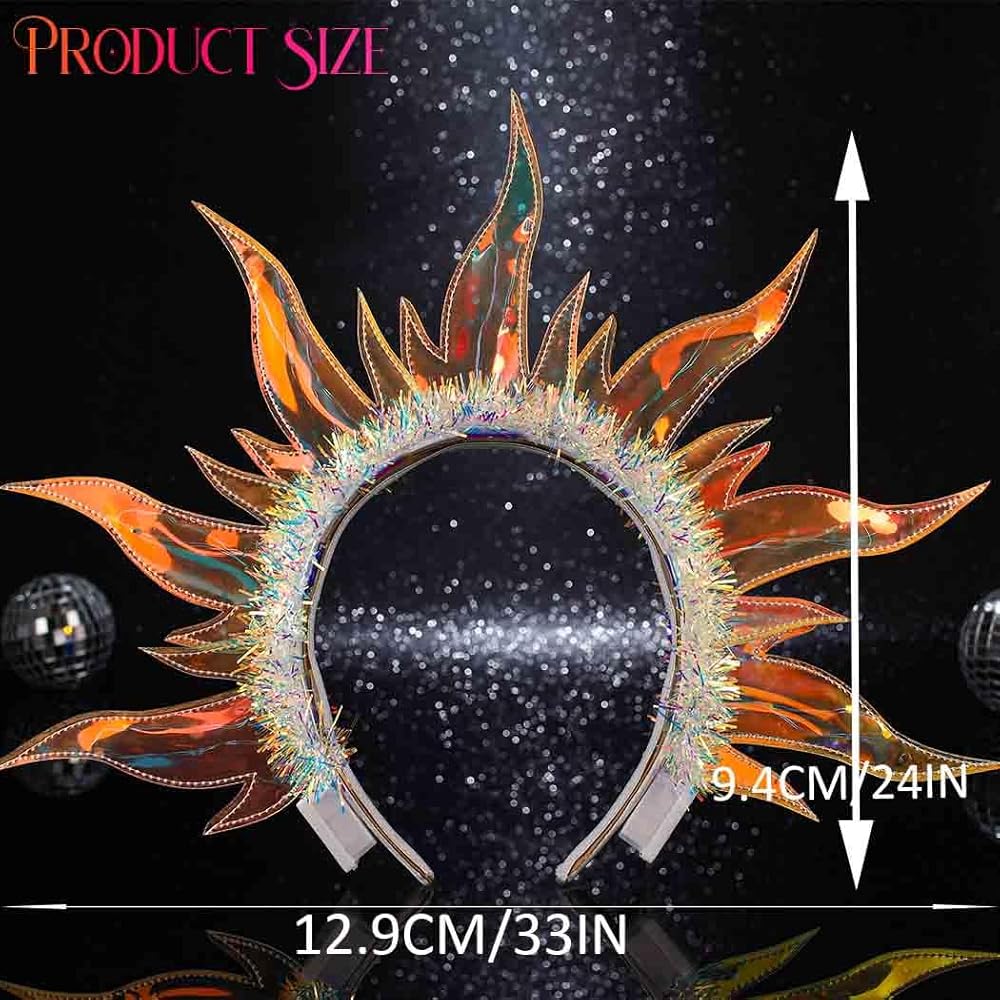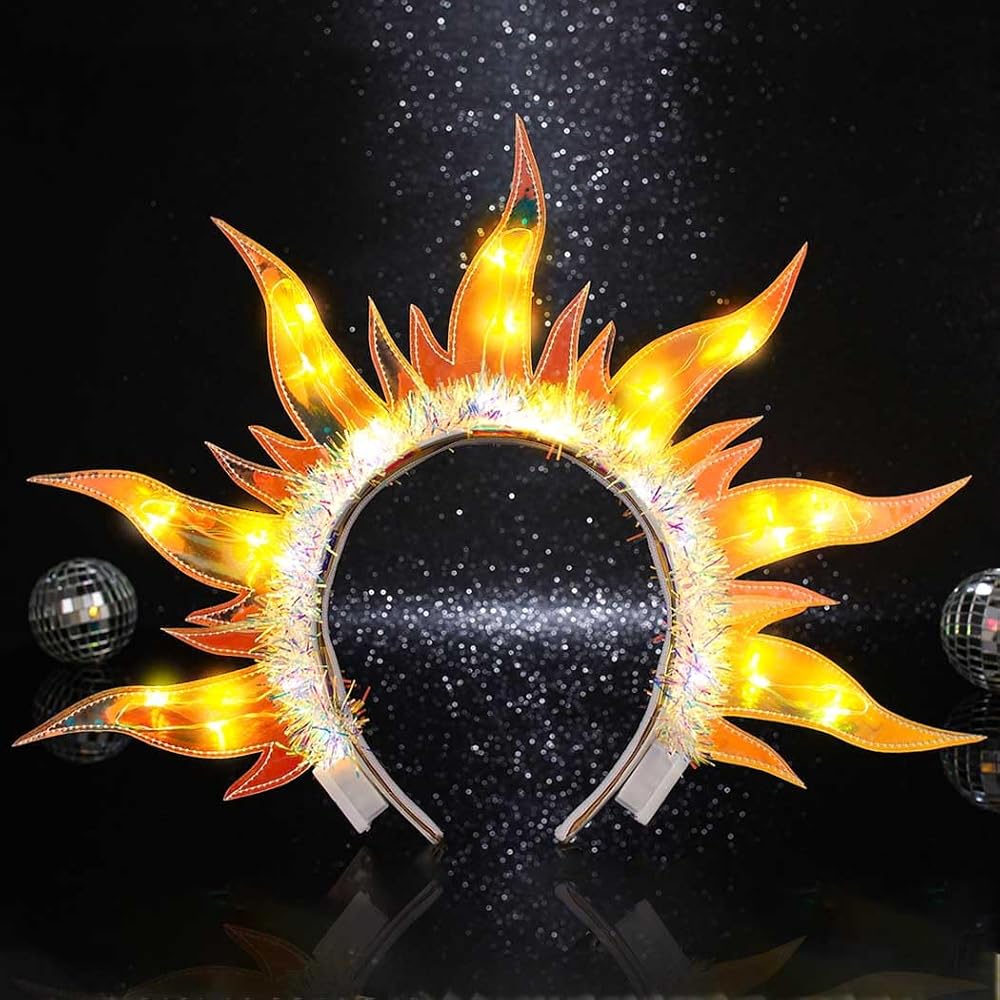 Yean Gold Flame Light Up Headband Sun Goddess Fire Halo Hair Band Led Party Costume Hair Accessories for Women