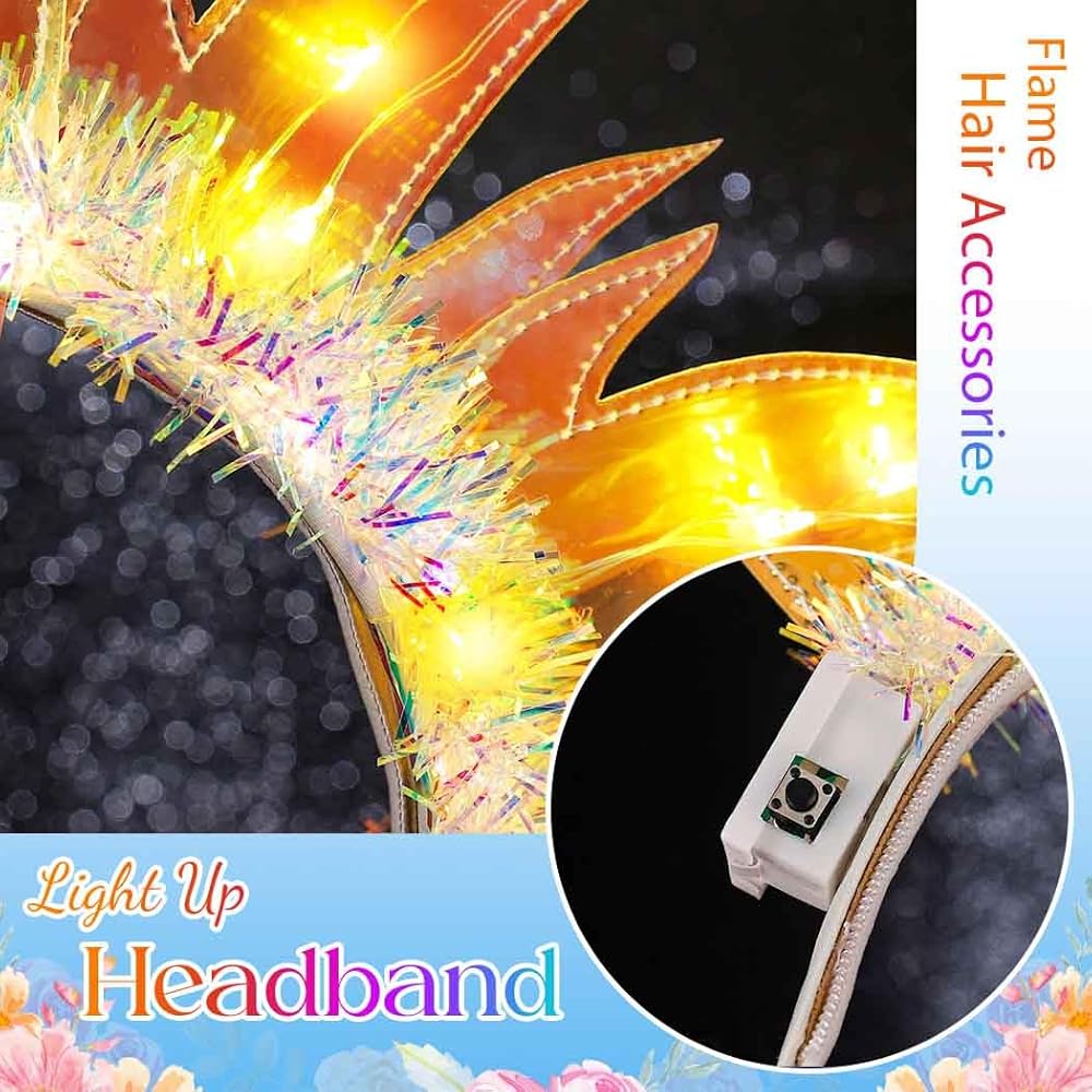 - Fire Light Up Headband are made of TPU cut the shape of the flame and led ligth, light up is beautiful and elegant.