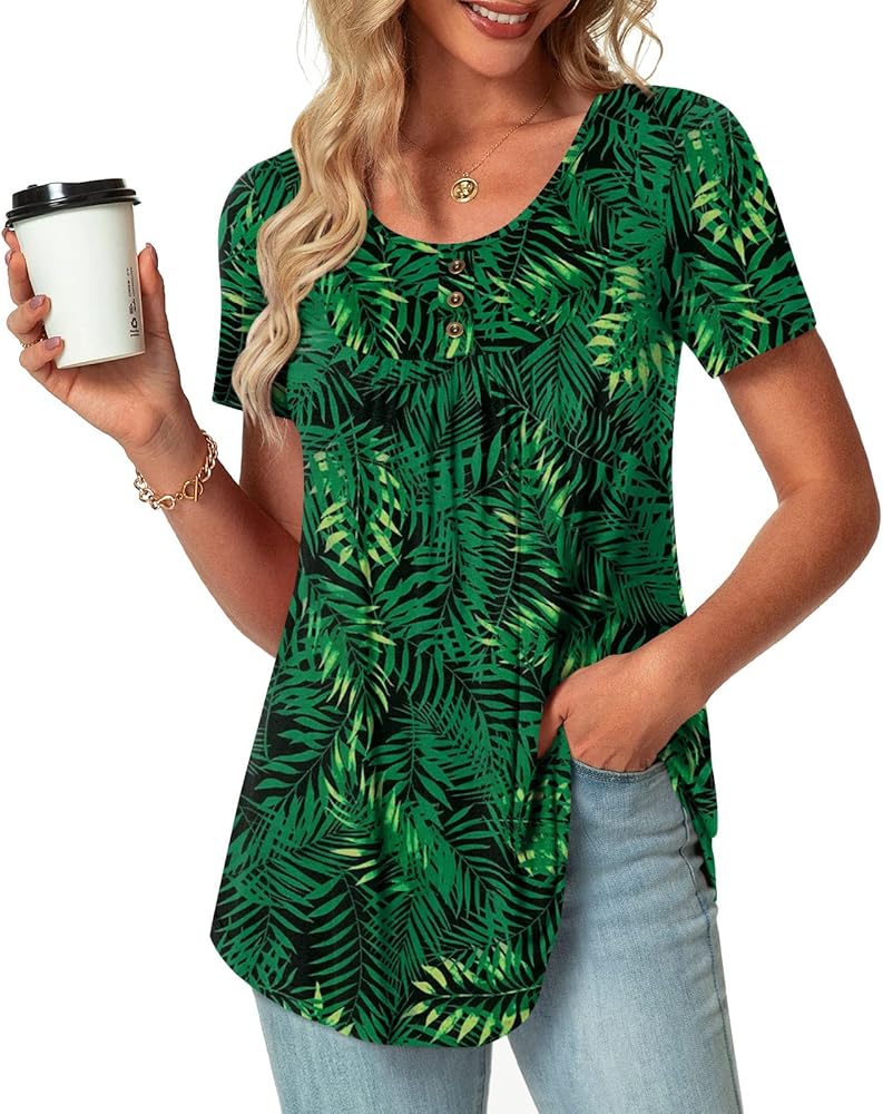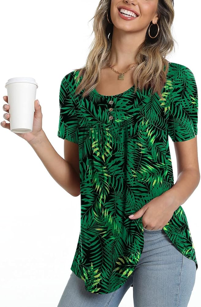Fashion Simple Design: 3 fixed buttons front design, pleated both front and back, hides your belly make you look cute, slimmer and fashion. These tops are flowy and flattering. They have great colors and patterns Also, the style is very flattering to all kind of body types. If you wanting it as a maternity top, it could probably take you through most of your pregnancy, and still be a usable part of your wardrobe afterwards.