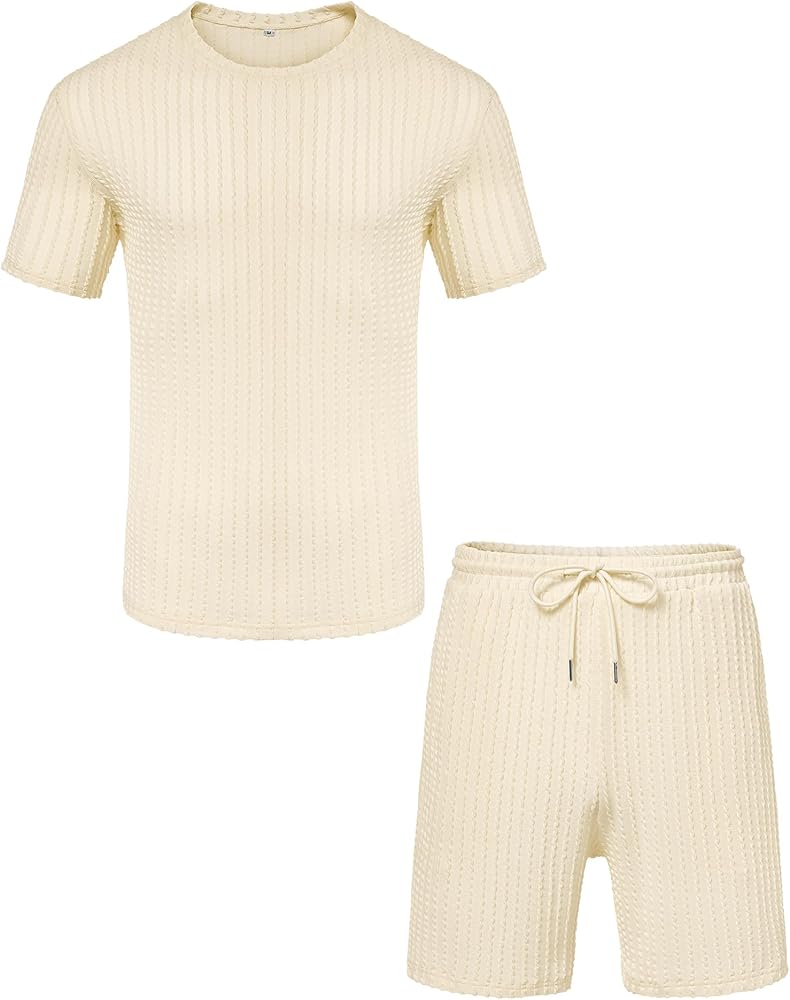 Warm Tips: Package including Babioboa mens tshirt and short 2 piece set: 1x knitted crewneck tshirt + 1x textured solid shorts in the same size. The size are US size, if you are not sure about your size, pls compare with our size Chart. Hand washing or gentle machine washing is recommended
