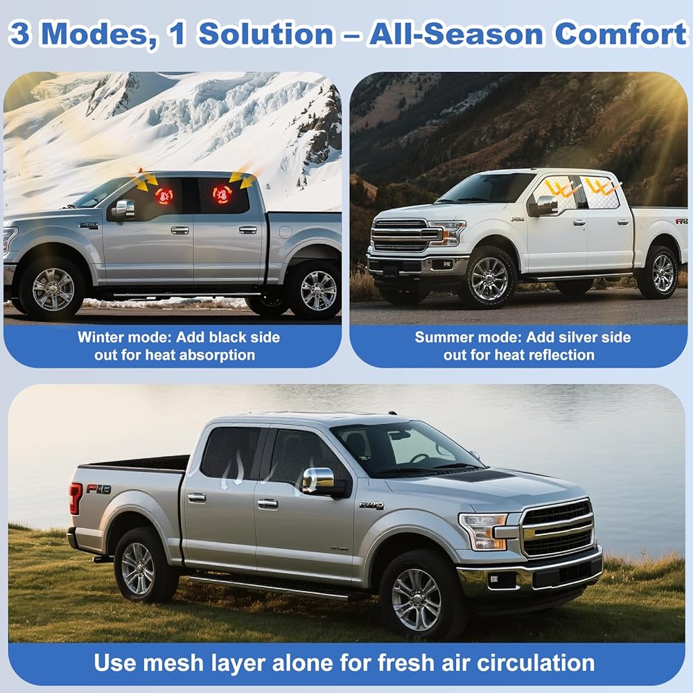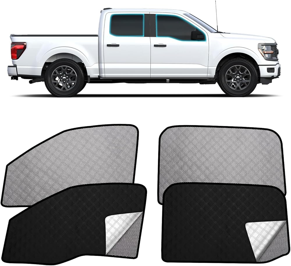 Upgrade your 2015–2020 ford f150 with the XCBYT car window shades for side window – a smart blend of sun protection, privacy, and convenience. Whether you're a parent looking to shield your baby from harsh sunlight, a camper seeking shade on long road trips, or simply someone who values interior comfort, these mesh side window shades deliver on every front. Engineered to precisely match your F150's side windows, the set includes two front and two rear shades. The front side window sun shade for car maintains safe visibility by leaving room for rearview mirrors, while the full rear coverage keeps passengers protected and cool. The breathable mesh not only reduces glare and blocks UV rays but also allows for fresh air circulation—ideal for napping children or curious pets. Enjoy true privacy while parked or resting. The double-networked design prevents prying eyes without compromising your outward view. Whether you're changing clothes at a trailhead or breastfeeding in a quiet spot, you can do so with peace of mind. Installation is quick and tool-free thanks to strong magnetic edges and optional adhesive clips, making setup simple no matter where you are.