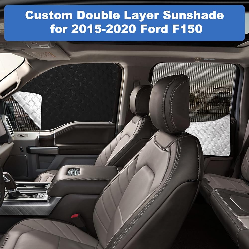 Custom Fit for F-150 2015-2020: The ford f150 window shades are precision-cut to fit the 2015 2016 2017 2018 2019 2020 ford f150 side windows. The front car window screen provides partial coverage that maintains clear visibility of mirrors for safer driving, while the rear window shades offer full coverage for enhanced privacy and UV protection—perfect for road trips, sleeping, or nursing on the go